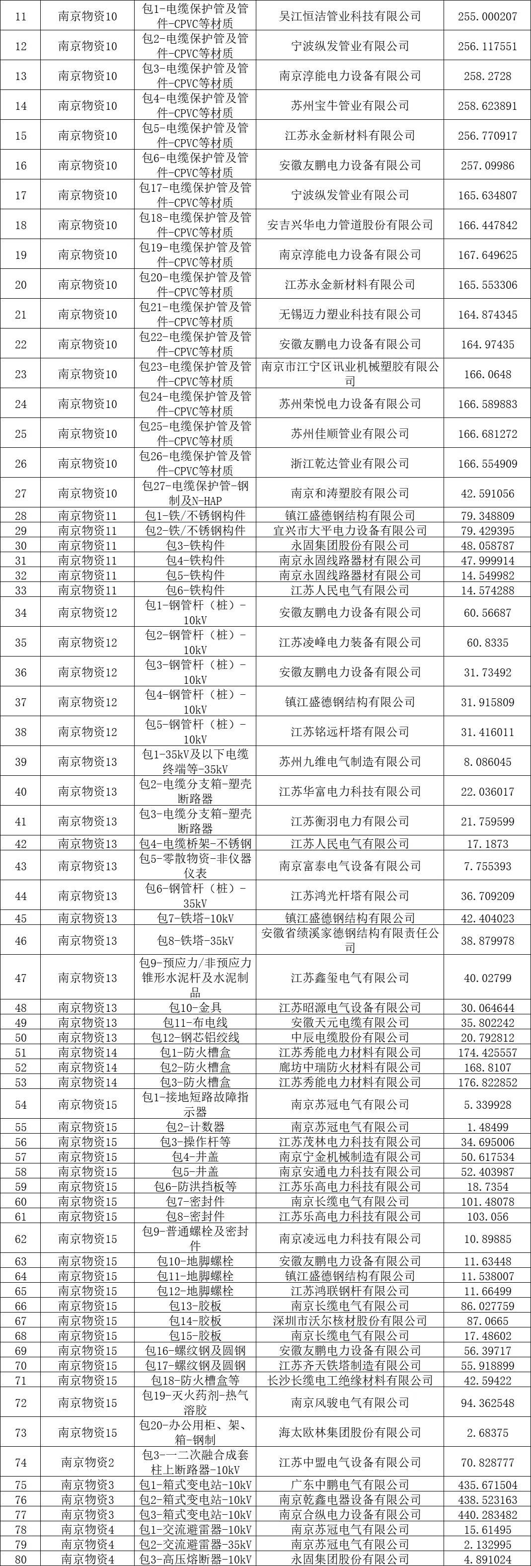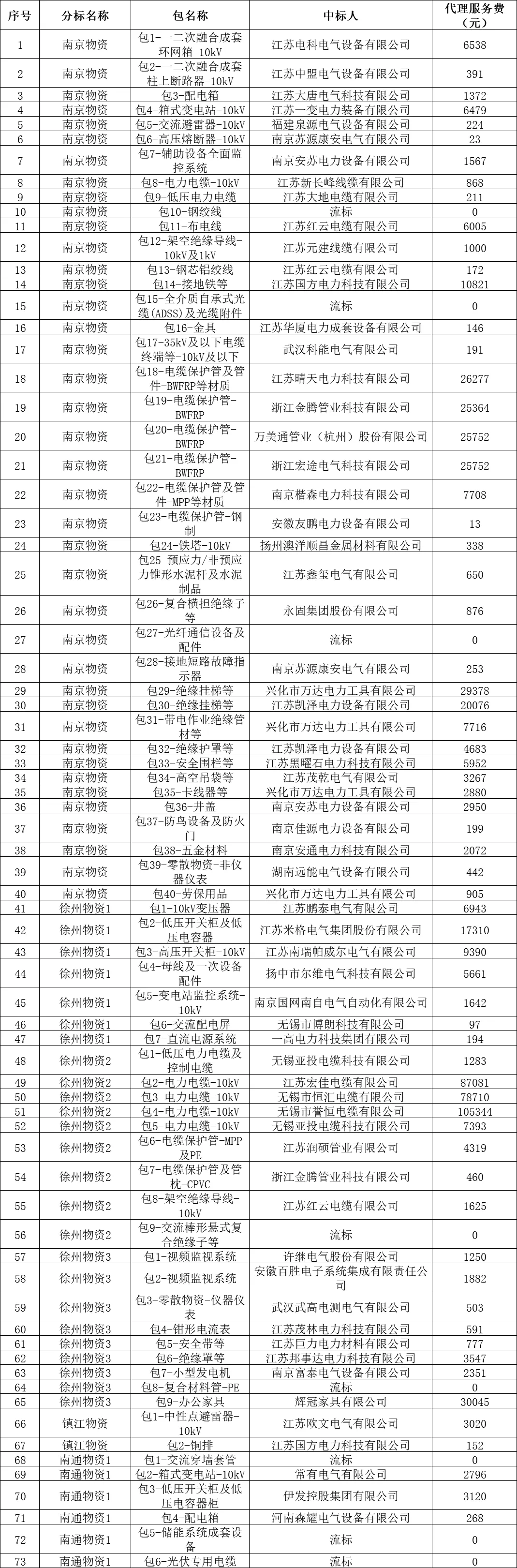 国网江苏电力2025年原集体企业第十次物资协议库存公开招标采购-1项目-中标结果公告