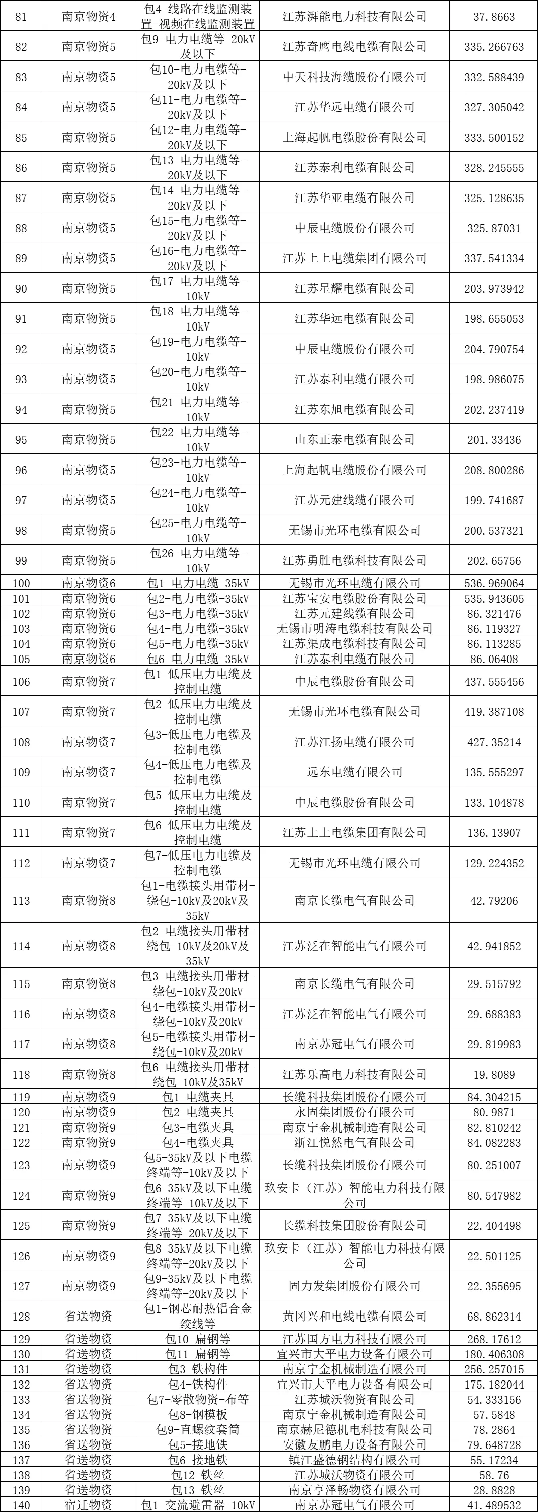 国网江苏电力2025年原集体企业第十次物资公开招标采购-3中标结果公告