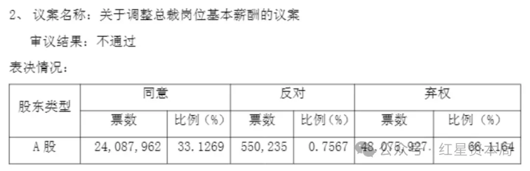给总裁涨薪26万元议案 审议未通过