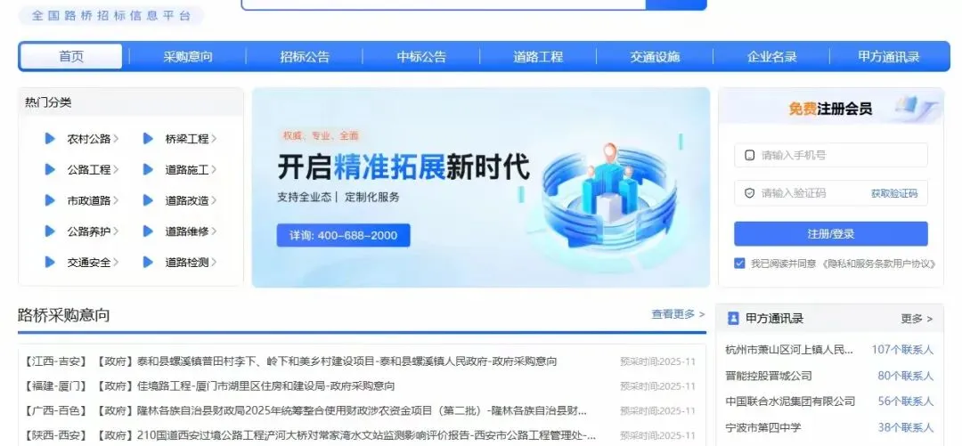 再介绍垂直行业的招标网站,比如路桥招标网luqiaozhaobiao.com,这是专注于公路、桥梁、隧道等交通基础设施建设的招标平台。发布的招标信息包括从勘察设计、施工总承包到工程监理、材料采购的全过程招标信息。这个平台服务于各地交通厅、住建局及大型工程建设单位,是土木工程建筑企业获取核心项目信息、参与国家基建的重要窗口。