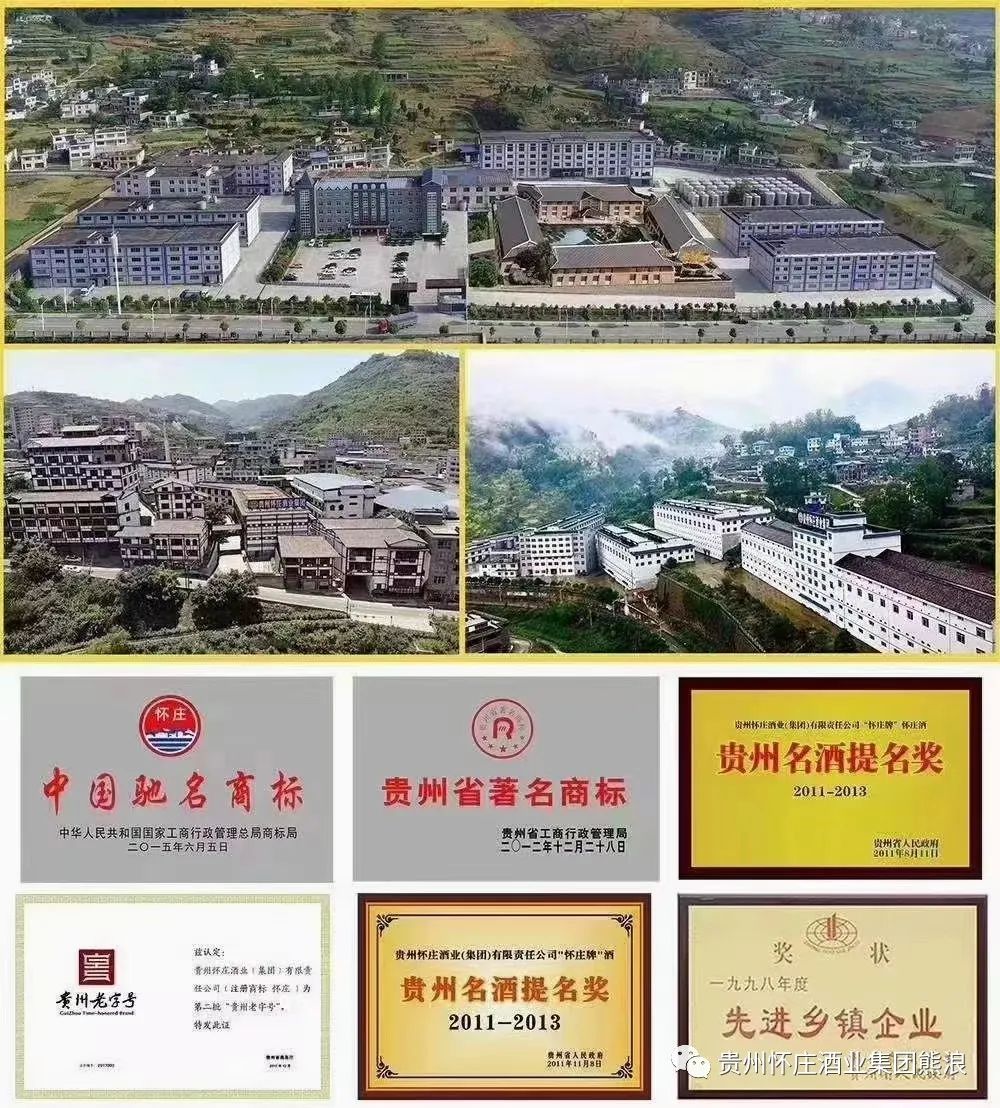 贵州怀庄酒业(集团)有限责任公司组建于1983年,是酱香型白酒原产地——贵州省仁怀市茅台镇最早的民营酿酒企业。集团公司总部位于茅台镇怀庄路009号,现有员工1000余人,注册资金5088万元,是集产、供、销于一体的实体酒类集团企业。怀庄集团以生产酱香型白酒为主,独资的3个规模基地:茅台镇怀庄路009号集团公司总部;仁怀市茅台镇名酒工业园区合马酿酒基地;仁怀名酒市茅台镇工业园配套产业园区坛厂包装仓储基地,均分布在茅台河东西两岸。年产优质酱香白酒5000余吨,老酒库存长期保持2万余吨以上,每天包装量2万多箱。怀庄集团先后获评为贵州十大名酒,遵义市五强白酒企业、、贵州老字号。