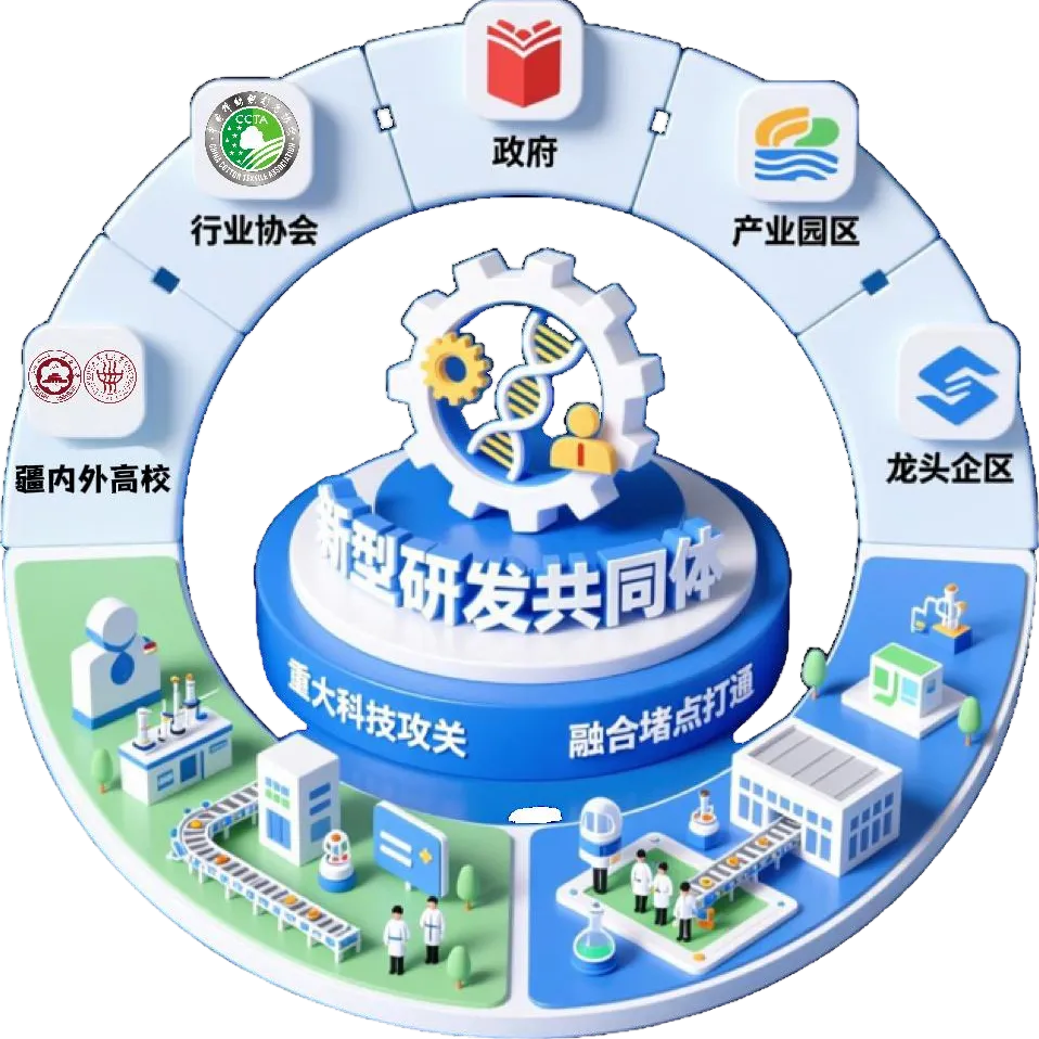 新疆大学牵头建设的高能级创新平台,锚定国家西部大开发战略与自治区 “大产业集群” 部署,在自治区多部门指导下,联合俞建勇院士团队、疆内外高校、行业协会、政府及龙头企业,构建 “政产学研用” 深度协同创新共同体,以创新驱动产业高质量发展,助力国家纺织产业安全与边疆繁荣稳定。
