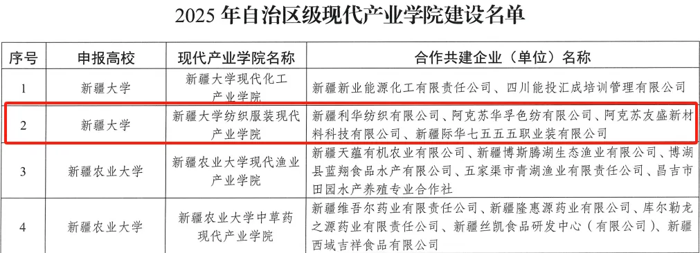 自 9 月 28 日研究院正式揭牌以来,理事会成员实现从成立之初25家到当前50家的扩容升级。与理事单位新疆际华七五五职业装,新疆利华纺织,阿克苏华孚色纺,阿克苏友盛新材料成立自治区现代产业学院。