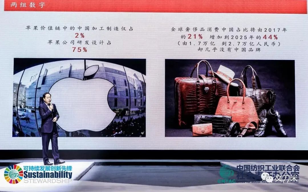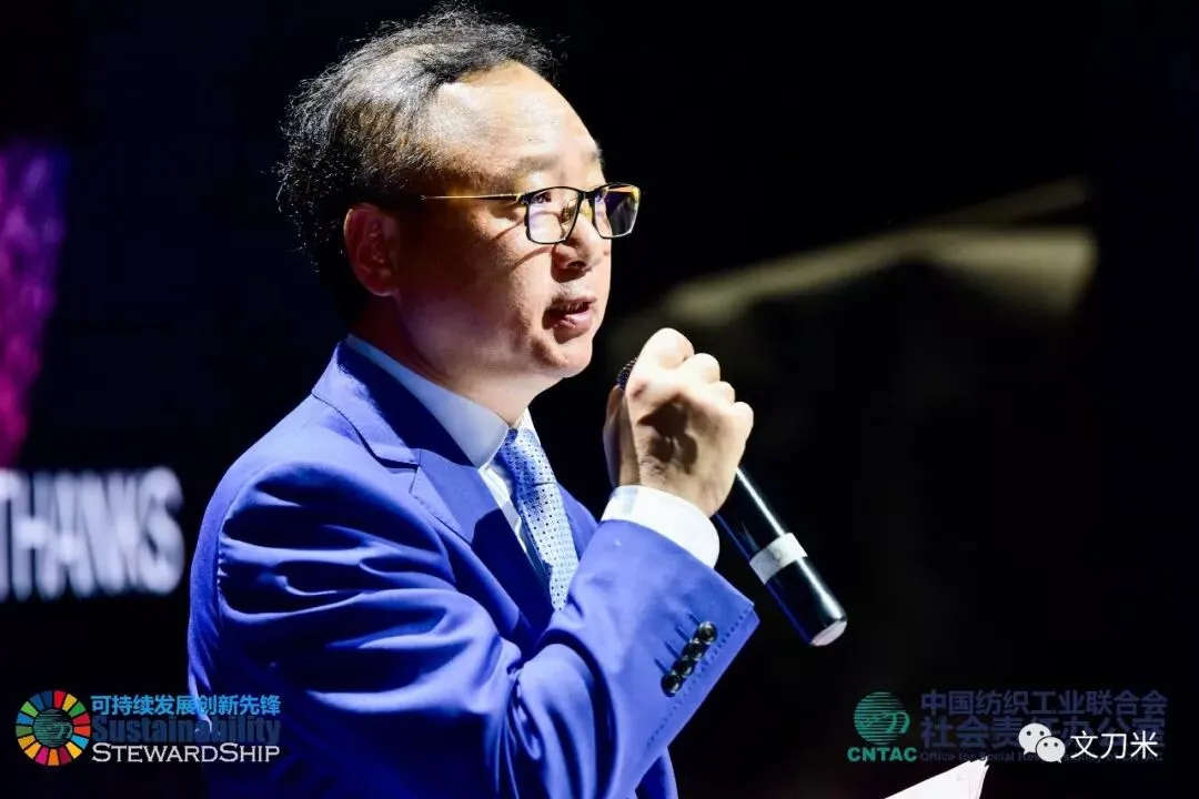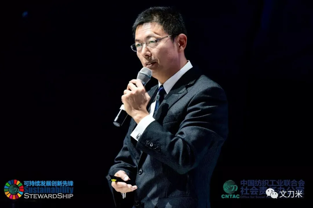 中国纺织工业联合会会长孙瑞哲的讲话比较宏观,从国内外趋势讲解可持续问题的重要性,“如果我们不解决问题,我将变成问题的一部分”。积极信号是,全球的制造业带来的GDP在增长,但碳排放量有所降低,2000年到2015年下降了19%。