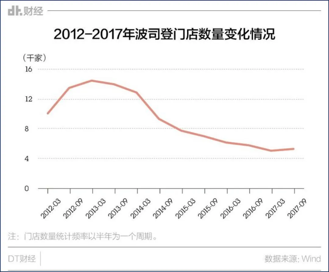 面对内外交困,波司登不得不开始大面积关闭线下实体店。2013—2015年,波司登共关闭近8000家实体店。