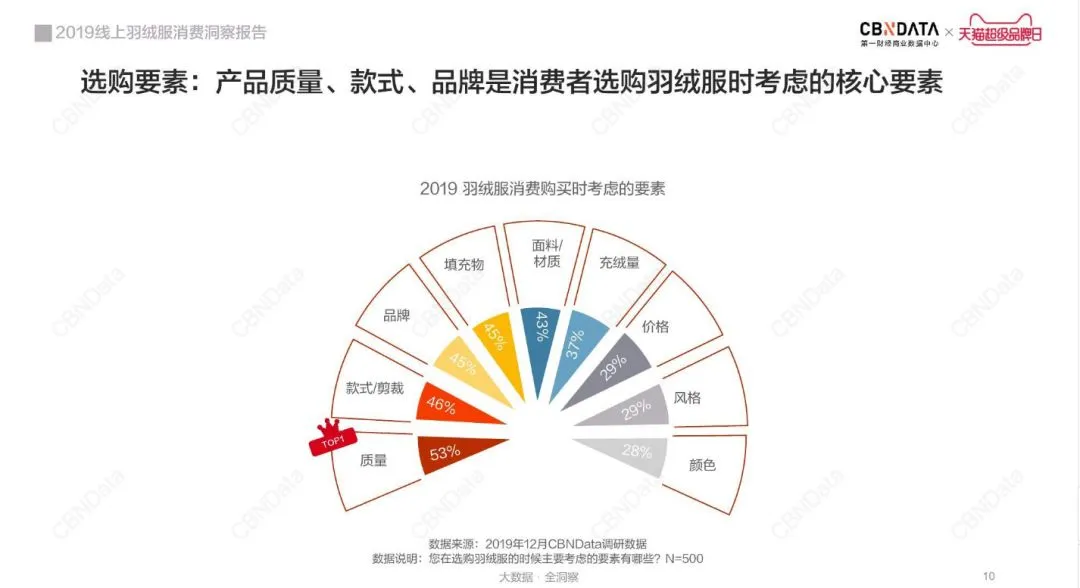 2019年底,第一财经商业数据中心(CBNData)也发布了《2019线上羽绒服消费洞察报告》,报告指出:消费升级的背景下,消费者对于羽绒服的态度“已与过去完全不同”。