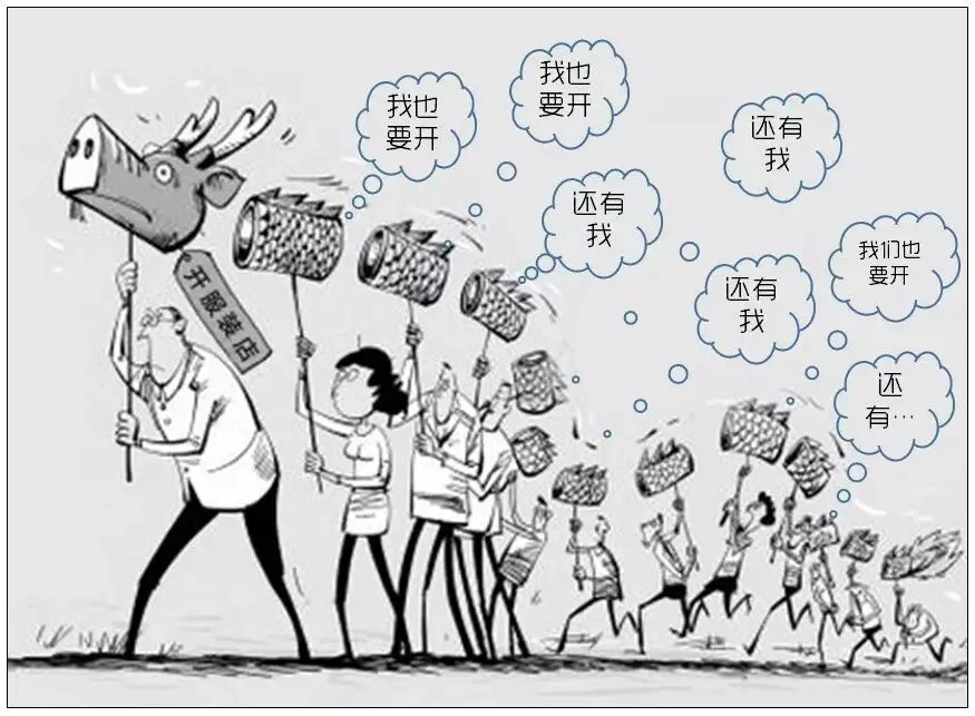 有人会问,为什么要开这么多门店呢? 这得分两部份来,1是盲目从众 ,2是渠道过剩;