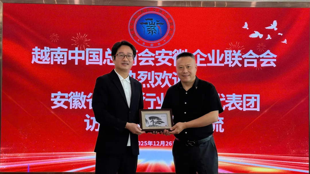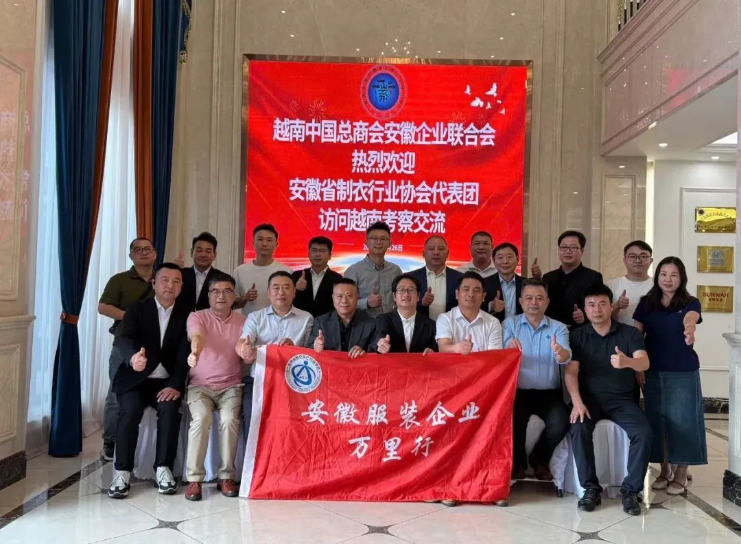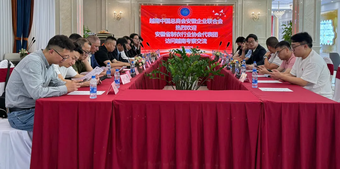 12月26日,由执行会长赵国伟,秘书长陈洁庚带队的安徽省制衣行业协会代表团到访越南,与越南中国总商会安徽企业联合会(以下简称“越南安徽商会”)开展考察交流。双方围绕服装产业链协同、在越投资布局、生产配套协作等议题深入对接,共话产业发展新机遇。