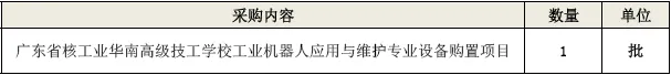 广东省核工业华南高级技工学校工业机器人应用与维护专业设备购置进行公开招标采购,欢迎符合资格条件的供应商投标。