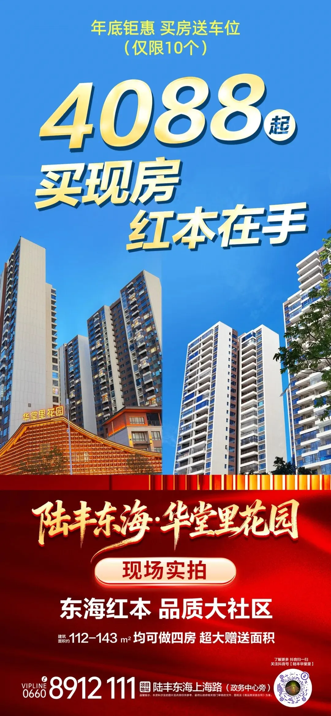 值得一提的是,目前华堂集团旗下的【陆丰华堂里花园】,是近年来是陆丰的销冠红盘,得到了超500位业主的认可。一期已于去年准时交楼,销售去化率97%,二期新品持续热销中,涵盖112-143㎡均可做四房户型,毛坯4088元/㎡起,带装修5300-6300元/㎡,年底收官清盘,推出特惠活动:买房赠送车位(使用权),名额有限,先到先得。