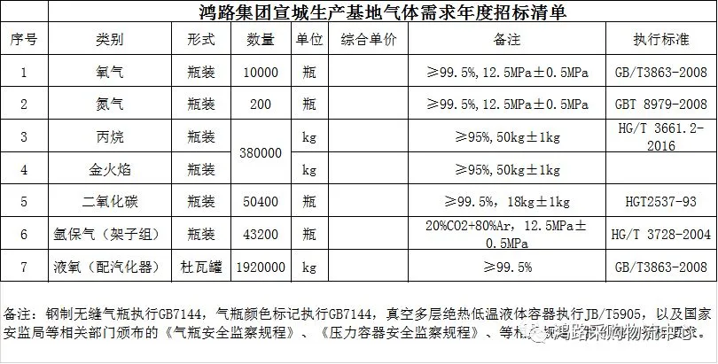 1、投标人所报价格应包括气体价格、气体运杂费、装卸费、设备安装调试费、税金(提供16%增值税专用发票)等可能涉及到的全部费用。瓶装为到厂价。招标清单中每项可单独报价也可部分或全部报价,此报价作为招标人评标依据,但不能限制招标人以其他方式签订合同的权利。