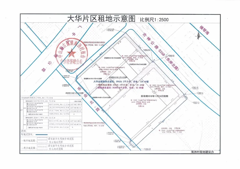 1、土地使用权人:中山市古镇镇海洲村股份合作经济联合社。