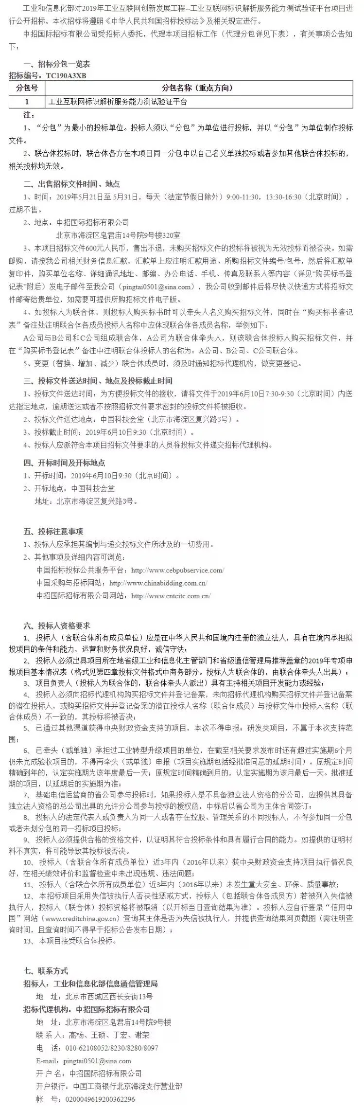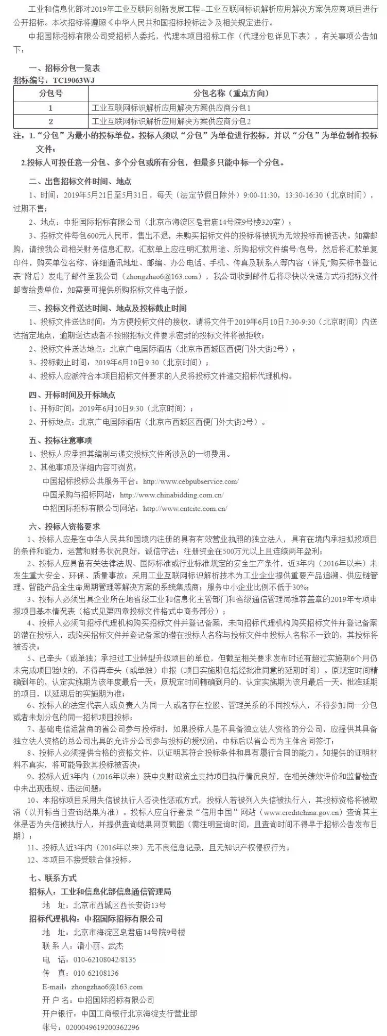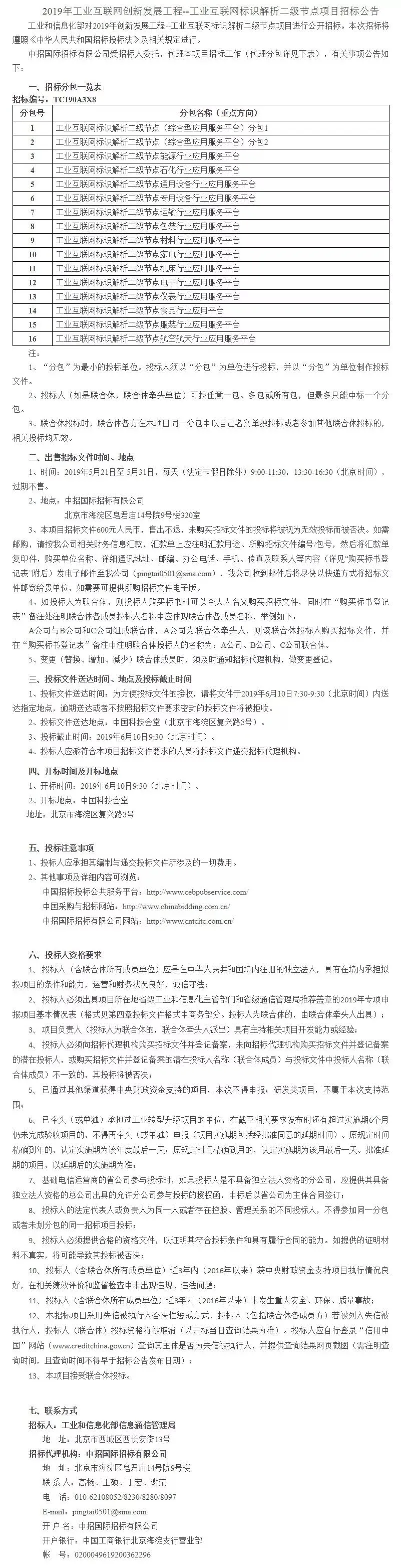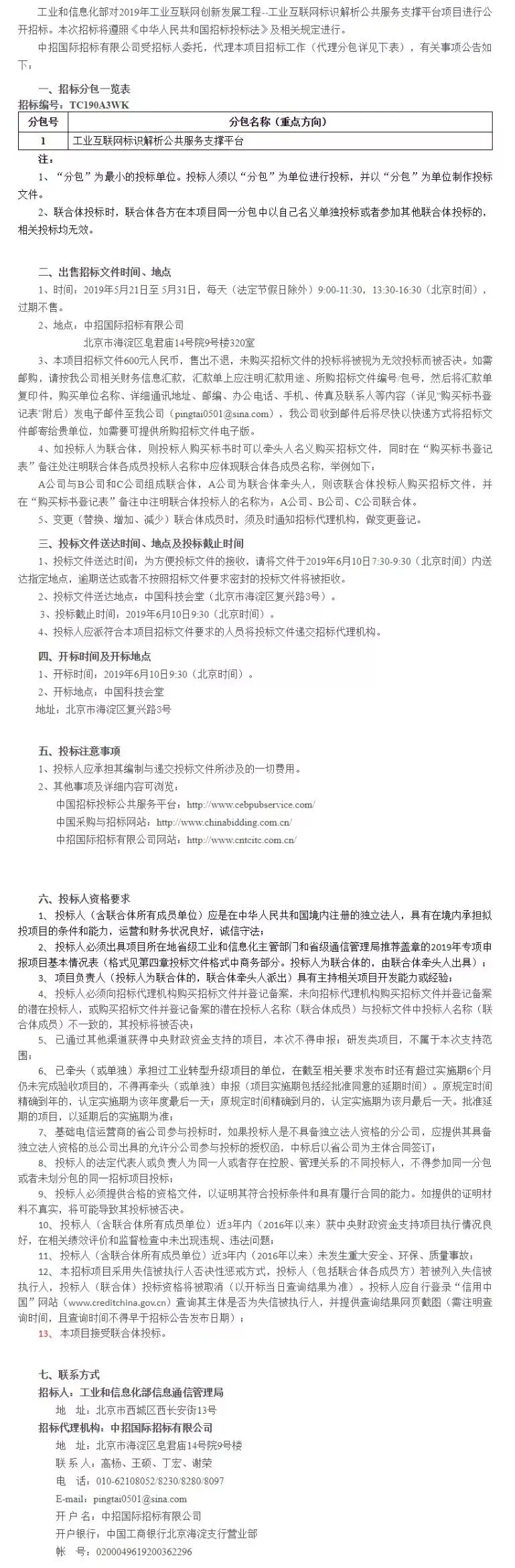 工业互联网标识解析公共服务支撑平台项目招标公告