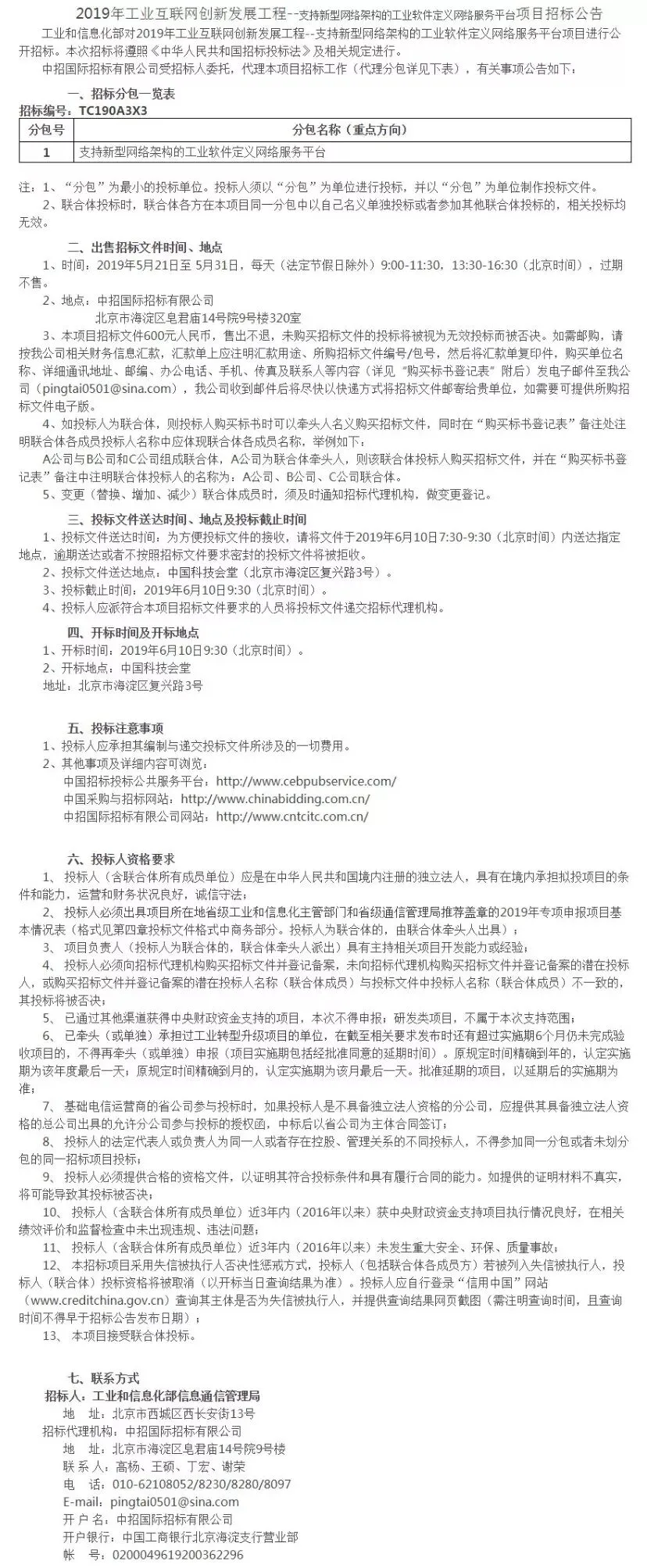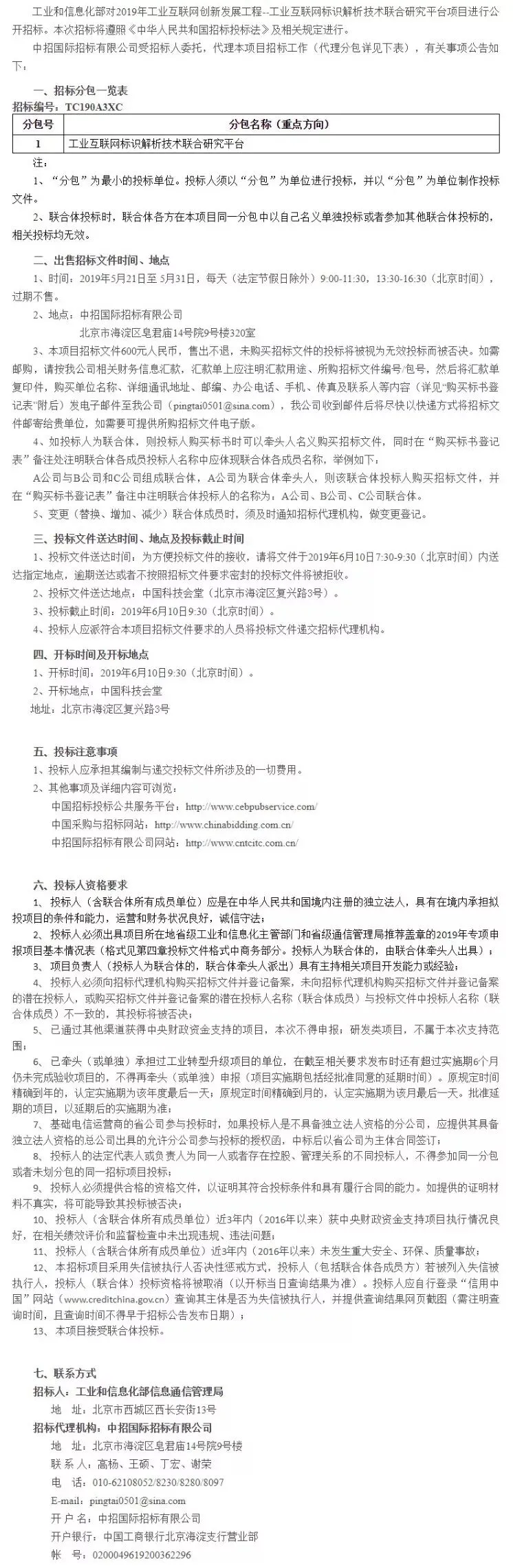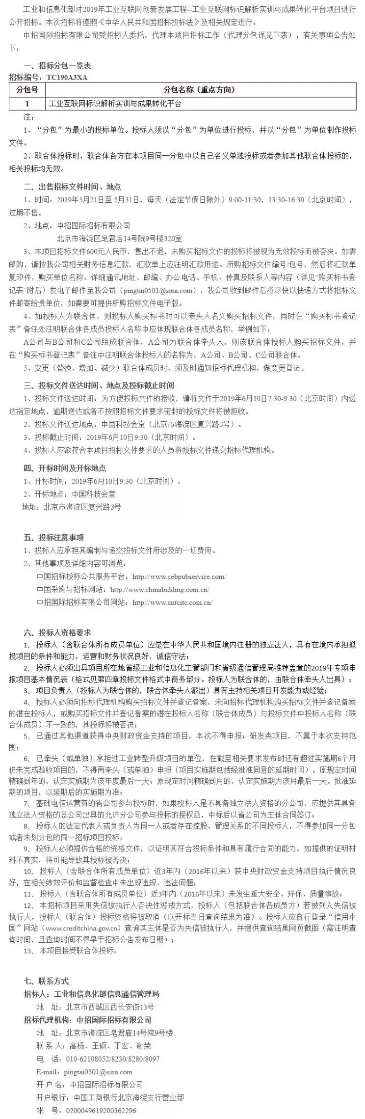 工业互联网标识解析公共服务支撑平台项目招标公告
