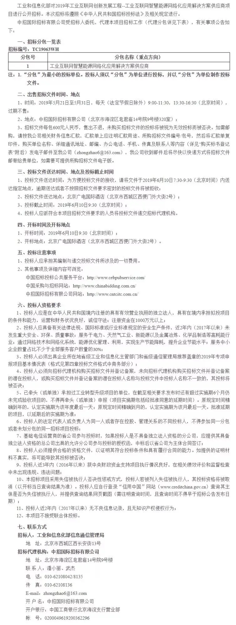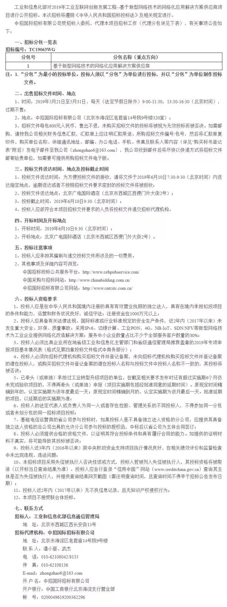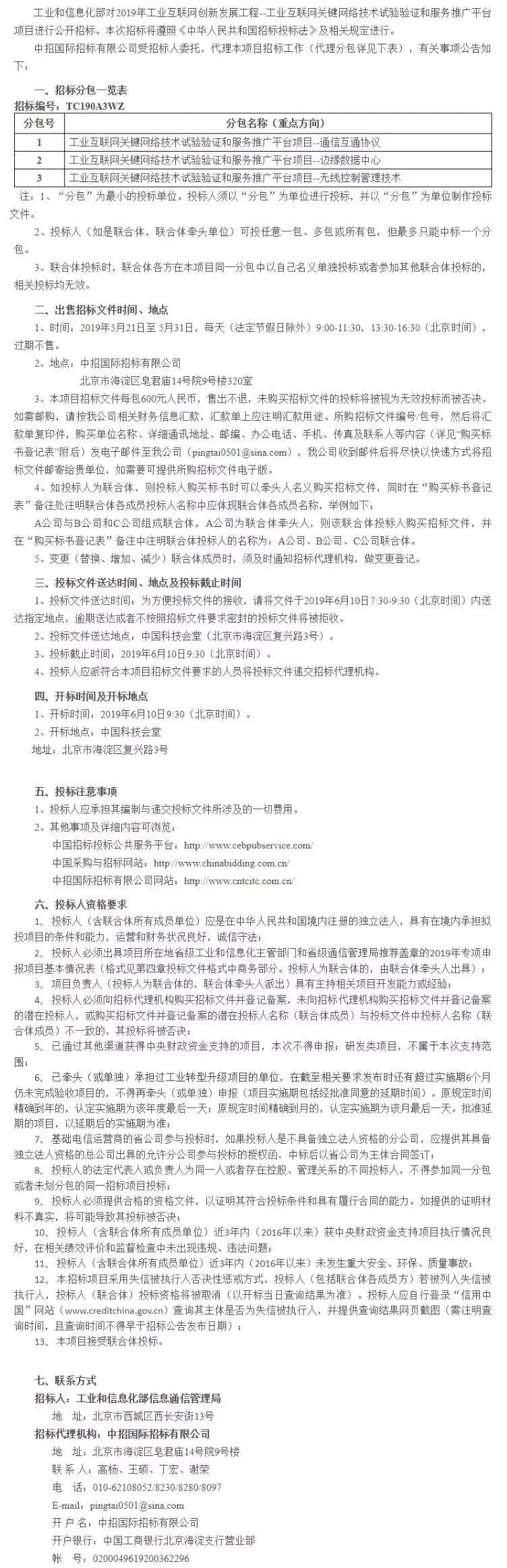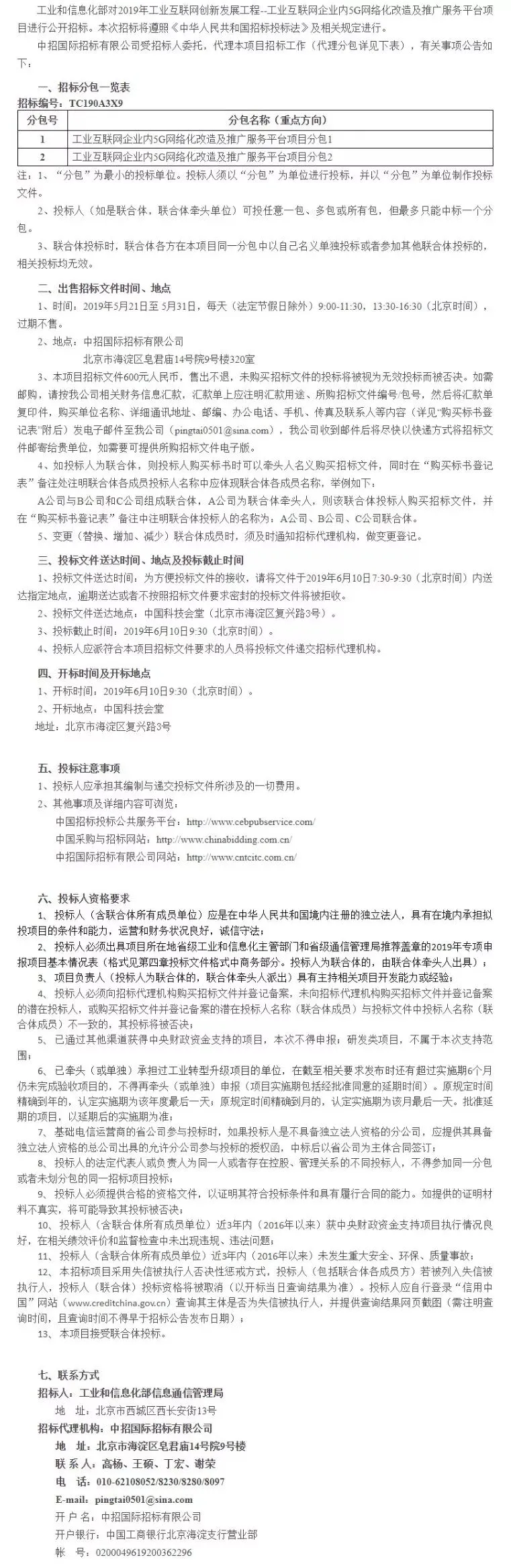 工业互联网标识解析公共服务支撑平台项目招标公告