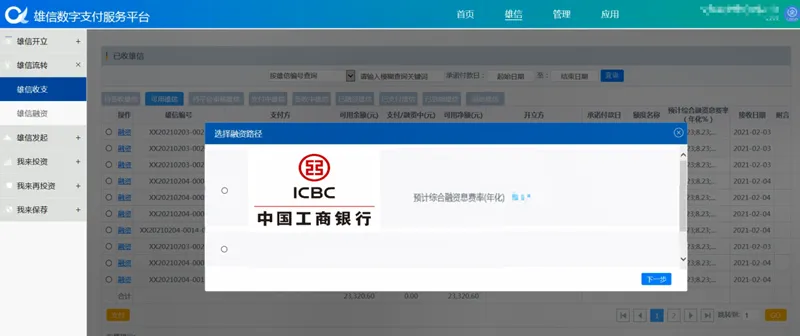 首单数字供应链融资业务完成界面。中国雄安官网发