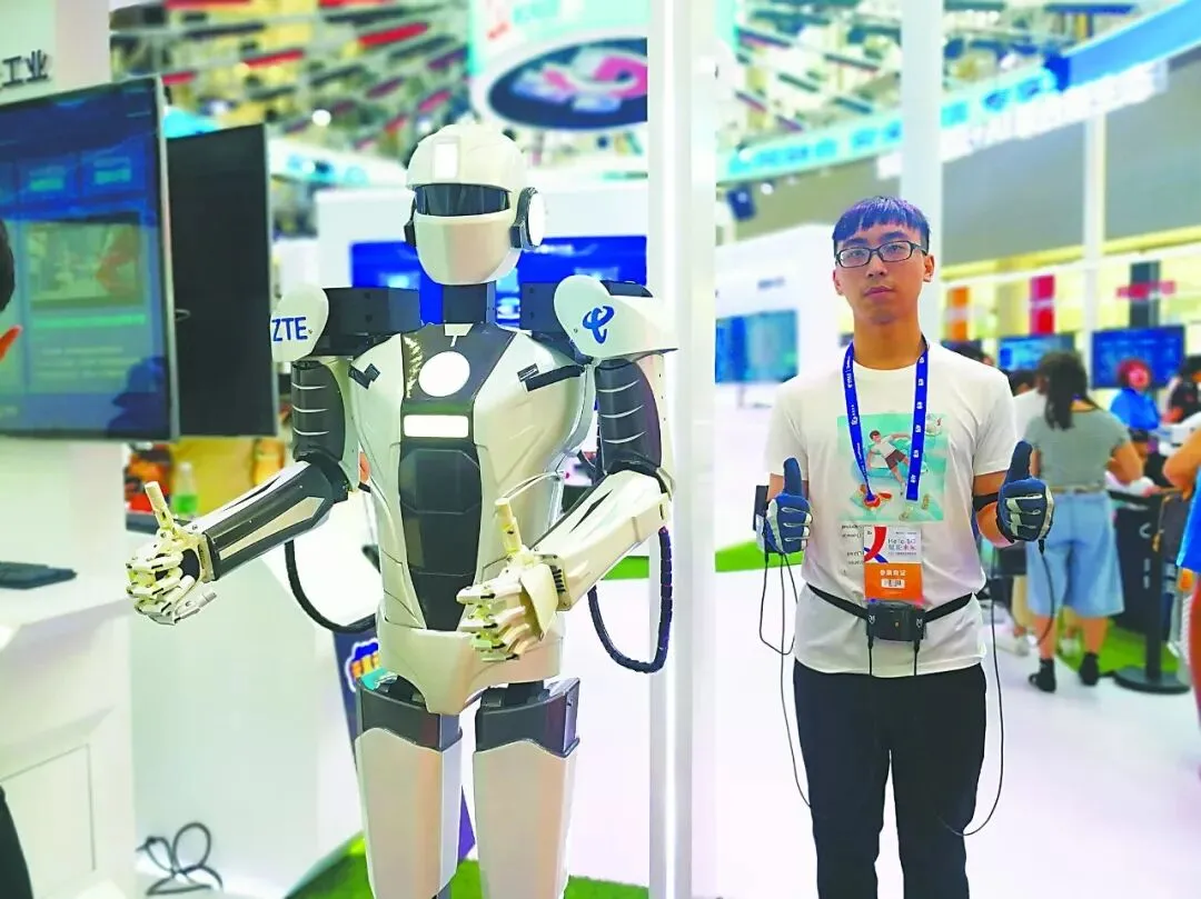 记者在现场看到,5G赋能未来不是畅想,而是已经确确实实到来了。好莱坞电影《铁甲钢拳》中用人体的动作控制机器战甲的剧情给人留下深刻印象。记者在中国电信的展台就看到了现场演示的相关技术。一个名为“隔空取物”技术是让人们佩戴有感应器的手套来遥控机械臂抓取瓶装果汁。由于5G网络的超低时延,用户与机械臂的动作是非常同步的。在另一个展位,记者还看到一名工作人员利用相关技术与机器人一起“打拳”。