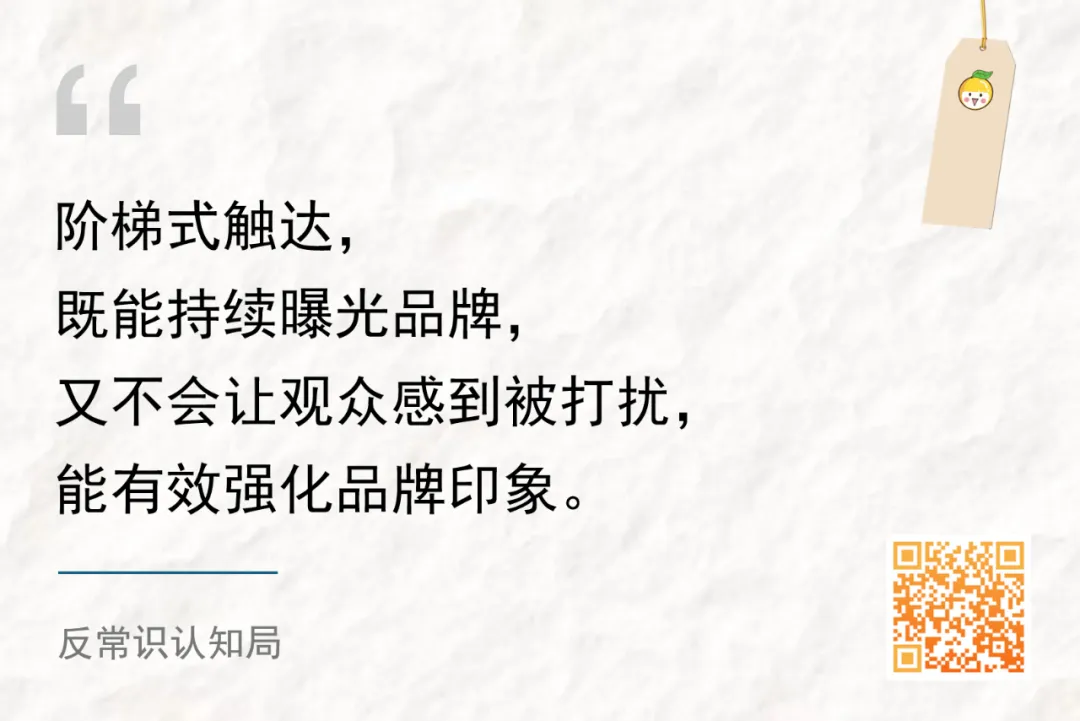 阶梯式触达,既能持续曝光品牌,又不会让观众感到被打扰,能有效强化品牌印象。