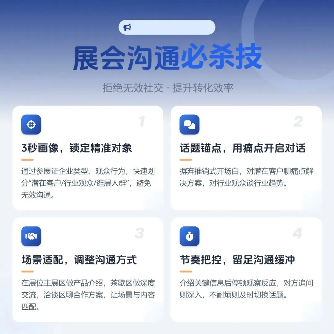想要打破展会尬聊的困局,关键在于抓住“找对人、聊对题”这一核心原则。