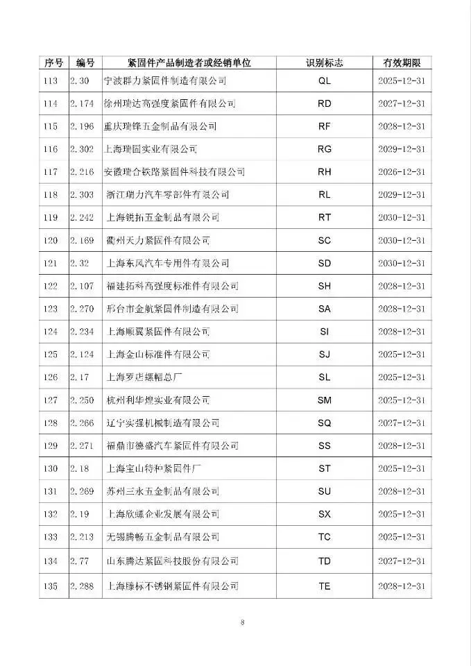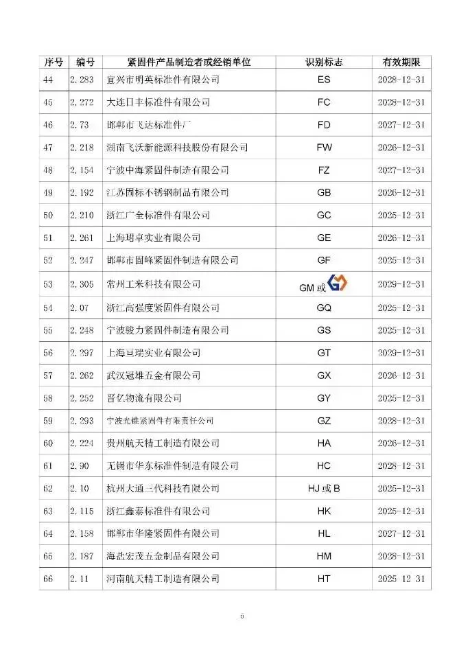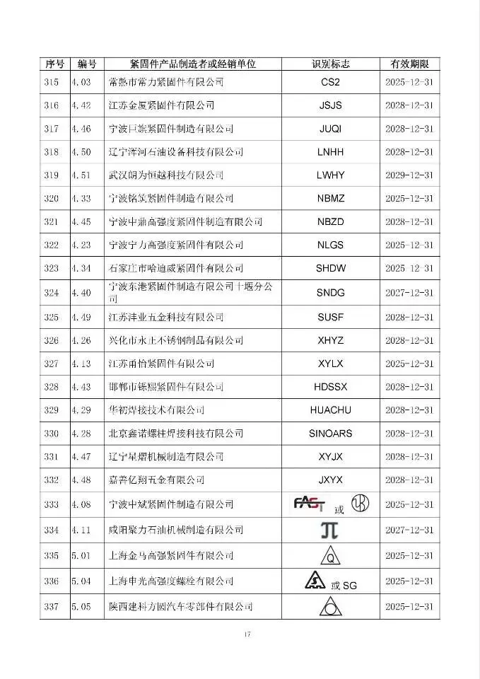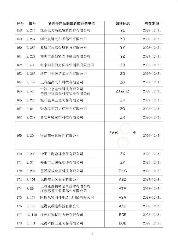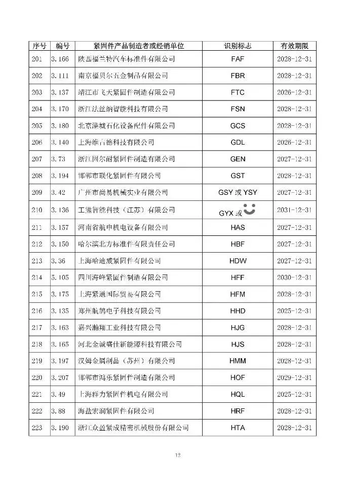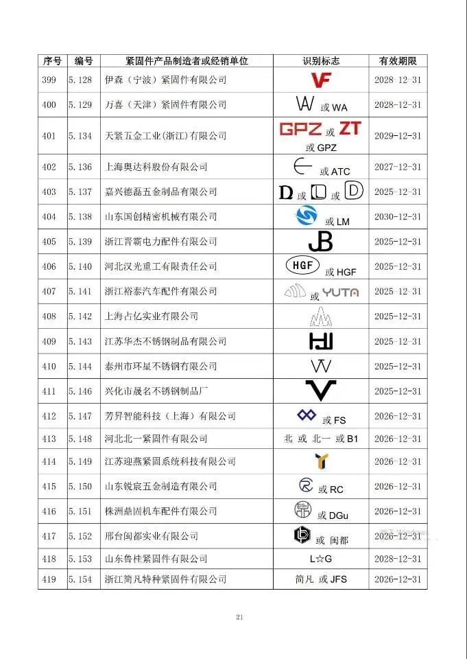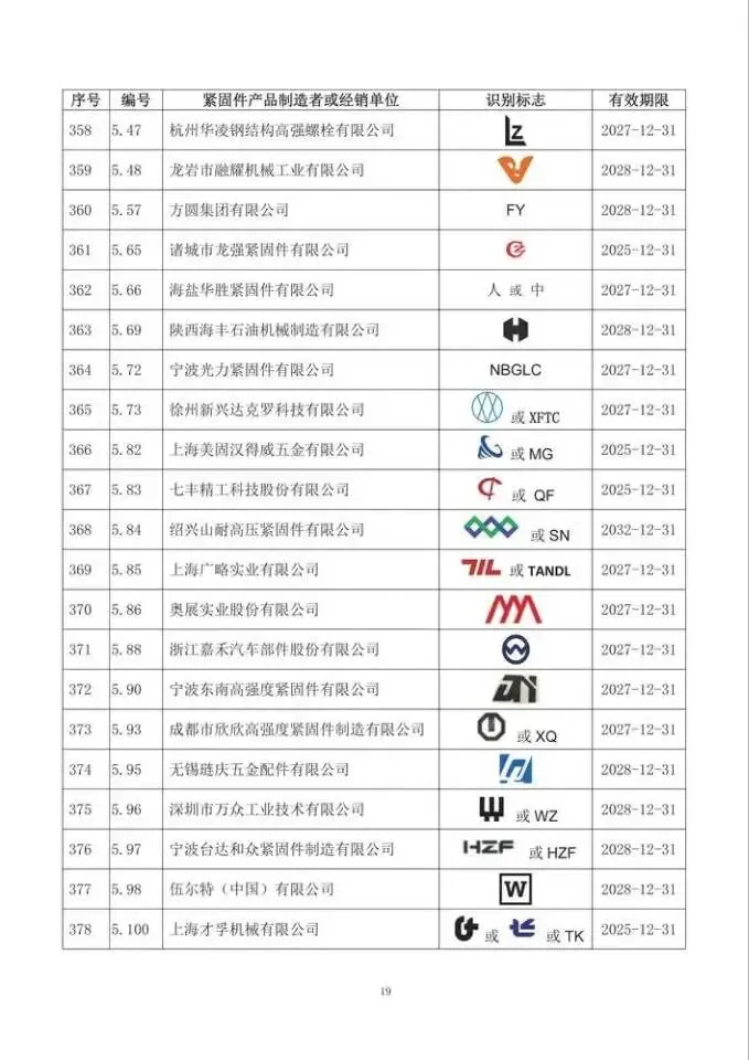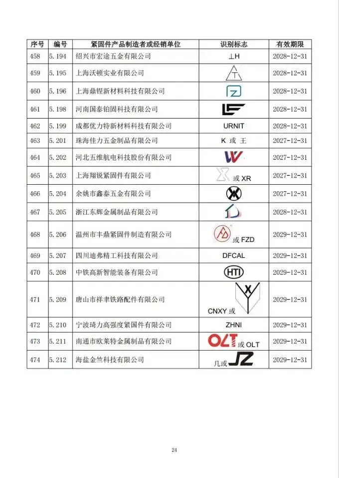 这次一共有474家单位成功拿到识别标志,还明确了有效期限,以后买紧固件、卖紧固件,认准这个标志准没错!不过有11家企业要注意了,你们的标志2024年12月底就到期了,还没换证呢~