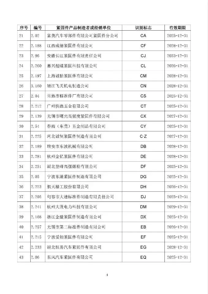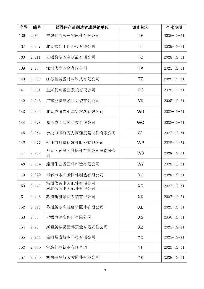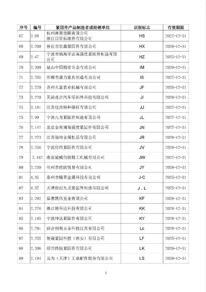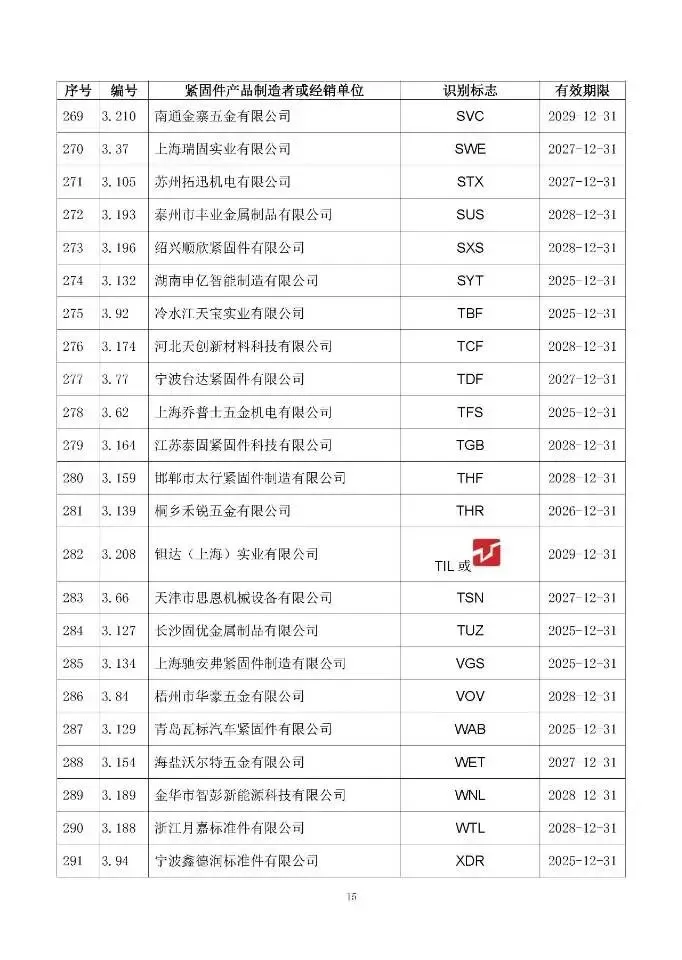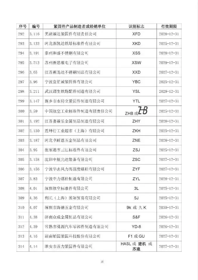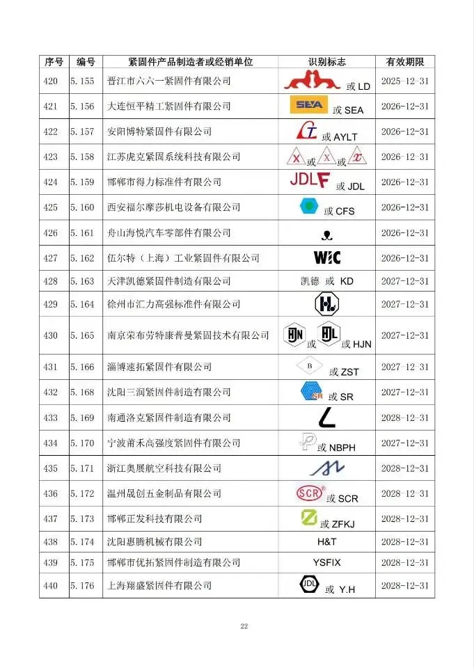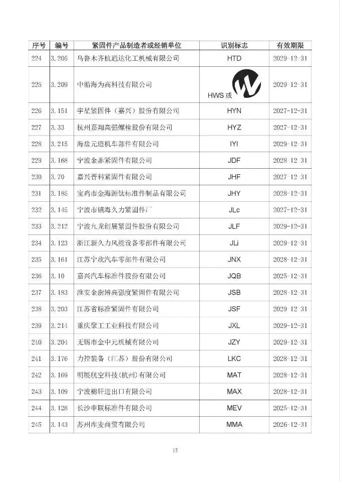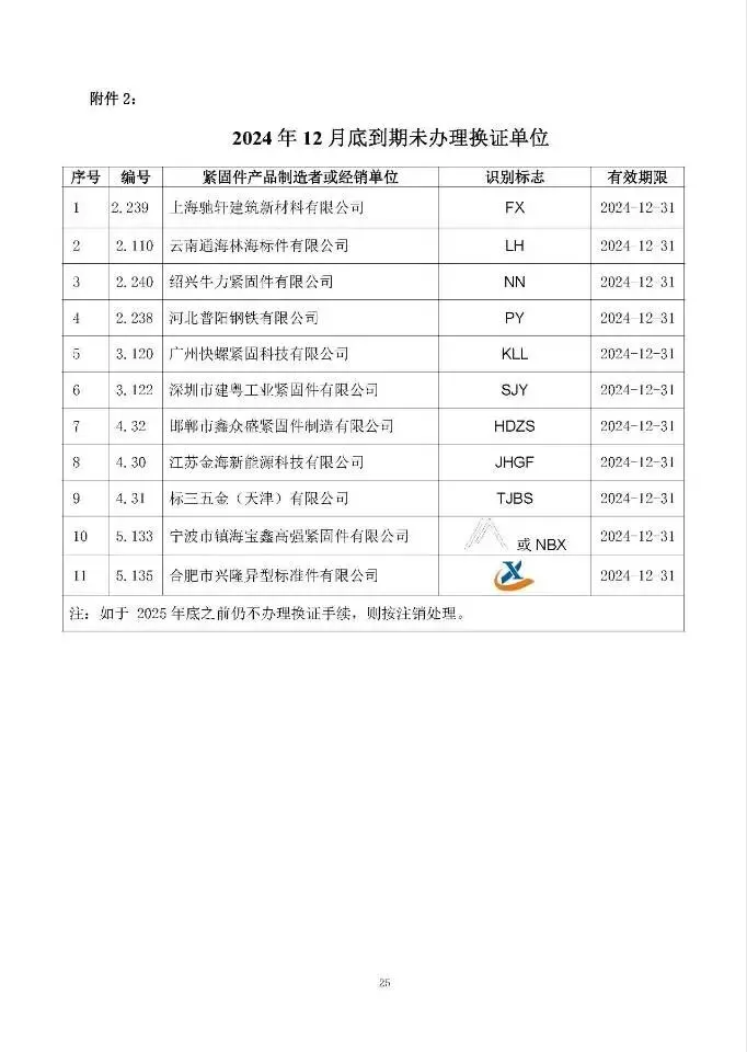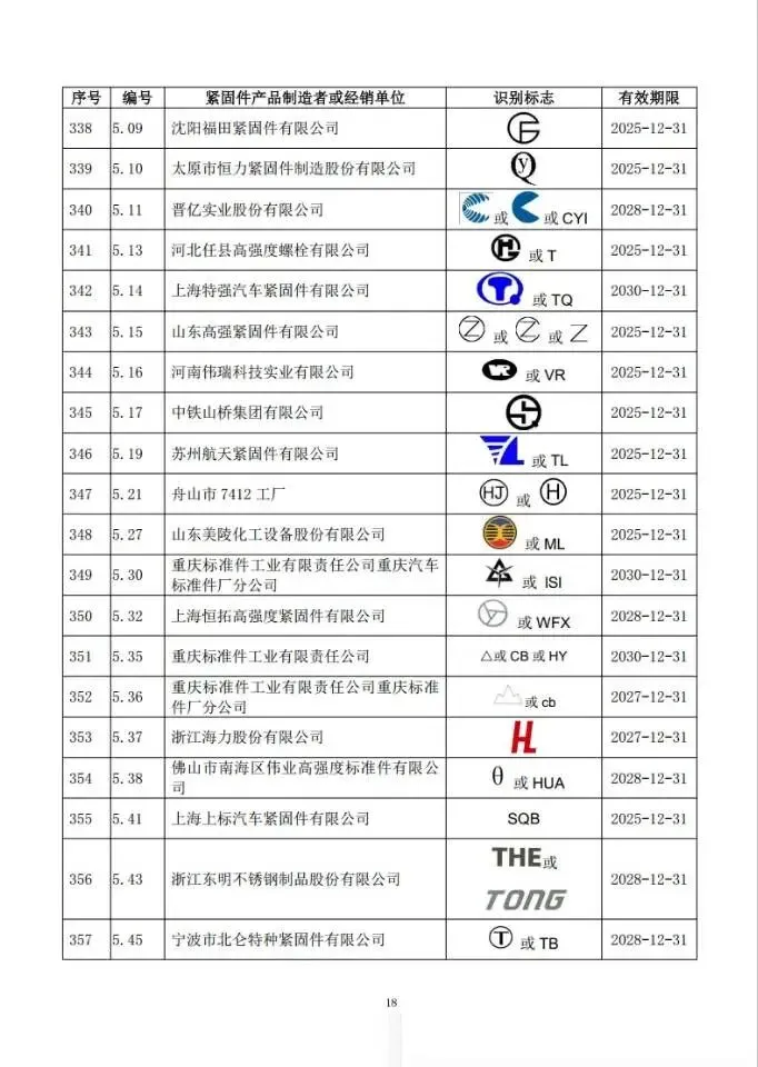 这次一共有474家单位成功拿到识别标志,还明确了有效期限,以后买紧固件、卖紧固件,认准这个标志准没错!不过有11家企业要注意了,你们的标志2024年12月底就到期了,还没换证呢~