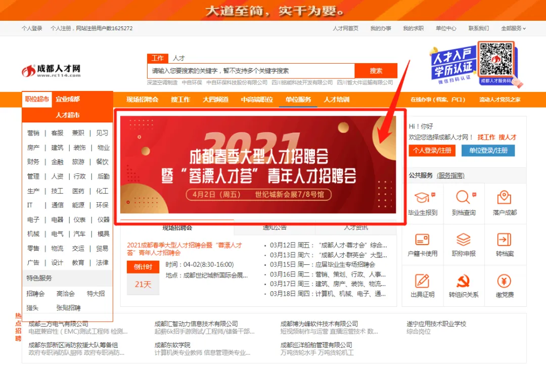 ②电脑登陆成都人才网(www.rc114.com)点击专题页面查看;