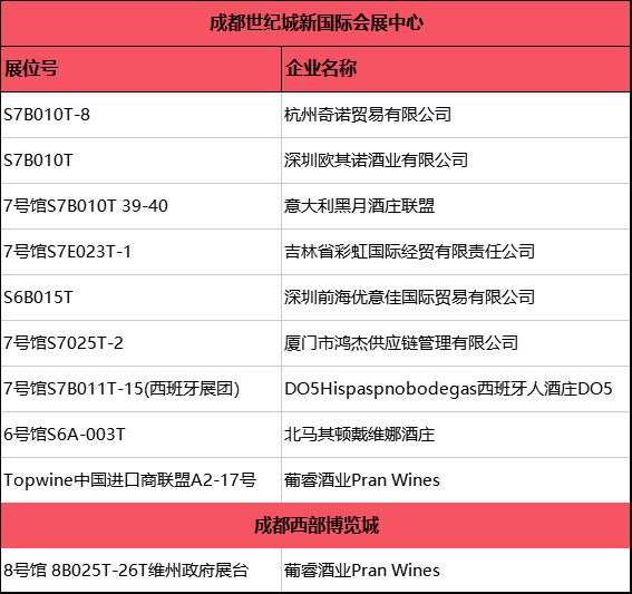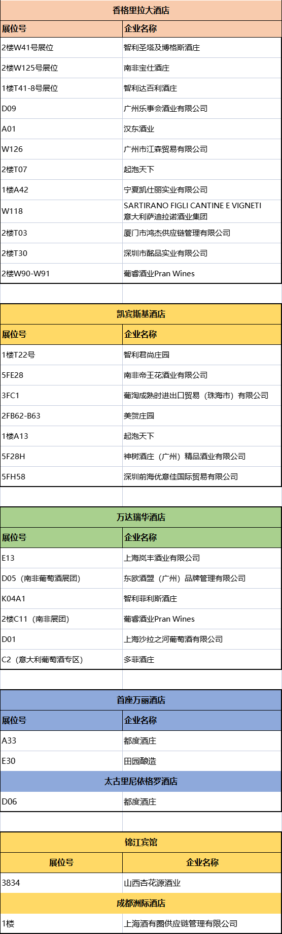4月8-11日香格里拉大酒店:智利圣塔及博格斯酒庄展位:2楼W41号展位;南非宝仕酒庄展位:2楼W125号展位;智利达百利酒庄展位:1楼T41-8号展位。