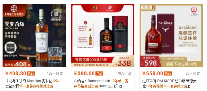 在中国线上平台,相同的品类和年份,日威的价格普遍高于苏威,且价格逐年上涨。
