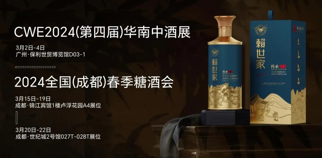 随着3月中酒展和春糖盛会的临近,白酒行业将迎来规模盛大的展示与交流。届时,赖世家作为去年表现亮眼的热门选手,也将盛装出席,继续展现出赖世家深厚的酿酒工艺和独特的产品魅力。