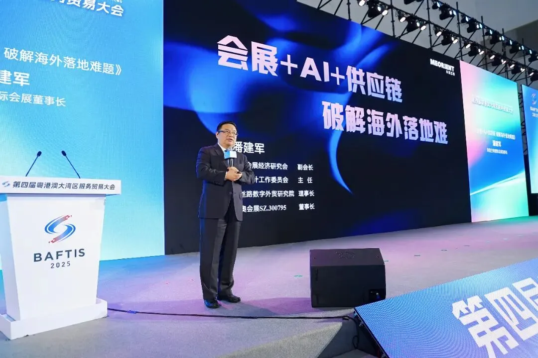 米奥兰特国际会展董事长潘建军分享《会展+AI+供应链:破解海外落地难题》,紧扣当前国际贸易环境动荡与全球供应链重构背景,直击中国企业“出海热”中的核心痛点,系统展示了从传统展会到“AI+供应链”深度融合的升级路径。潘总还提出“会展+AI+供应链不是一个简单的叠加,是资本纽带下的服务深度融合”。