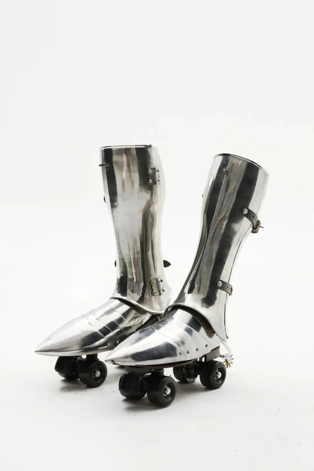 Stainless steel shoe armor, knight boots, roller skates, cowhide soles