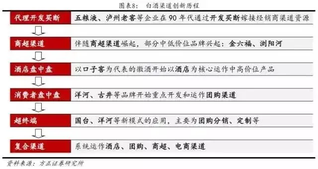 从渠道运作模式变迁来看,营销创新是以消费者为核心的,通过对消费者消费意识形态的洞察,不同价位产品侧重不同的销售渠道。高端产品的团购和礼品渠道,中高端产品的酒店和核心消费者渠道,中低价位的流通渠道运作。营销模式没有定式,只有不断的创新才能立于不败之地。