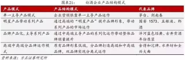 完善的产品结构是企业运作模式的载体:产品线结构的设置体现了企业的市场运作规划和模式塑造,如洋河依靠单一主导产品线的区域精细化发展模式;古井贡酒的中高和中低两大系列主导产品模式体现了企业清晰明确的市场运作思路,依靠主导产品的运作带动大品牌的形象提升。