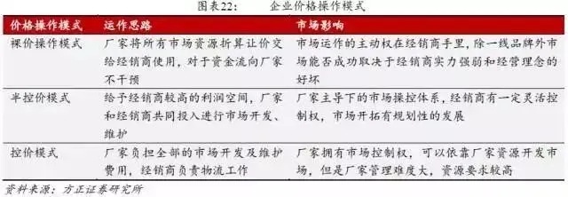 价格模式是市场最容易误解的地方,价格体系的操作模式决定了企业的市场运作模式,从企业对市场的掌控度来看,有三种主流的运作方式:控价模式、半控价模式、裸价模式,每种价格模式的背后是企业对运营模式、组织结构和资源导向的相匹配。