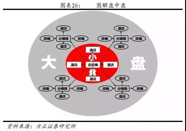 中高价位产品盘中盘模式的核心运用原则:市场渠道是分层次的,其中酒店渠道和团购渠道是对市场起到引领性作用,适用于“二八法则”,通过资源聚焦到酒店和团购渠道,就可以通过这两个渠道的引领作用带动整个市场渠道的运作。但随着行业调整以及消费形态的变化,近年来渠道运作的效用有所降低,各个酒企开始着力抢占终端资源,进行核心消费者培育,而这背后的本质原因还是消费者消费意识逐步回归理性后品牌的作用将越来越大。市场经过多年的竞争,酒店盘中盘、消费者盘中盘被不断的模仿复制,单一渠道的运作对市场已经很难起到作用,多种渠道协调发展的多盘互动的竞争模式成为系统竞争的。营销模式的模仿性很强,在同质化的大背景下,企业竞争到最后,一定依靠的是品牌力和执行力。