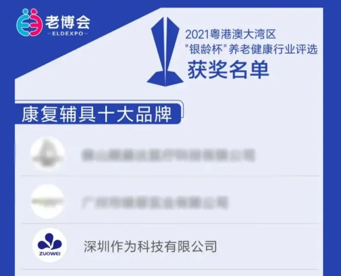 2021粤港澳大湾区“银龄杯”养老健康行业评选活动自评选以来,数百家企业踊跃报名参加,经初选,共有78家企业进入网络评选。结合线上投票结果,经线下行业专家终审,最终深圳作为科技在2021粤港澳大湾区“银龄杯”养老健康行业评选中荣获“2021中国康复辅具十大品牌”和“最具网络人气奖”。