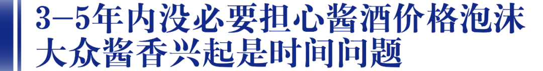 随着酱酒热潮不断高涨,“抢酱酒就是抢钱”成为共识,越来越多的酱酒企业推出千元价位酱酒,争相入局次高端、高端领域。那么,酱酒价格是否存在泡沫?酱酒销量是否存在泡沫?“酱酒没有泡沫,而且远远没有泡沫。”朱伟坚定地说。在朱伟看来,现在之所以有很多观点认为“酱酒过热”、“见顶”、“泡沫”,只不过是基于酱酒行业发展太快得出的本能推论。“有三个例子可以反驳这一推论:因为中国经济高速增长二三十年,美国在十几年前得出结论认为中国经济即将崩溃;十几年前因房价过高,人们认为房价存在大量泡沫,即将破灭;5年前茅台市值过1万亿,人们再次认为白酒、茅台存在泡沫。然而,这三个事件回头来看,没有一个应验。”朱伟表示。“未来三五年内,酱酒行业都谈不上有泡沫。因为供需紧张,酱酒矛盾在于供不应求,而不是供大于求,现在几乎所有酱酒企业产品根本不够卖。”朱伟认为,目前酱酒市场需求持续上升,酱酒产能的扩张却有一定滞后期,供需矛盾愈演愈烈,3年、5年之内根本没有必要担心酱酒的泡沫,“10年之后酱酒供大于求时,再谈泡沫为时不晚。”当下,酱酒企业发展显然是进入了黄金期。在朱伟看来,未来五年,酱酒产能决定企业发展。所谓酱酒的营销和品牌并不重要,重要的是企业拥有足够的产能与存量。同时,纯粹需求拉动的酱酒扩产潮会持续高涨。未来十年,品质、品牌及市场经营能力决定企业发展。此外,业外资本会大量涌入,酱香酒呈现出巨大财富效应。但资本并不重要,重要的是经营能力,否则企业很难立足。短期而言,酱酒产能还达不到市场消费需求,因此,现阶段酱酒品牌主要集中在高端价格带布局。“然而,对于酱酒来说,百元左右大众价位也可以有很好的利润率。”在朱伟看来,从经济规律角度来分析,未来酱酒产能充足之际,会有越来越多的酱酒企业向下渗透,进军大众价位,“随着产能扩大,不是所有酱酒企业都能在次高端甚至超高端实现销售,在竞争压力下,他们必然会向下覆盖。而随着消费升级,酱酒在大众价位覆盖也只是时间问题。”