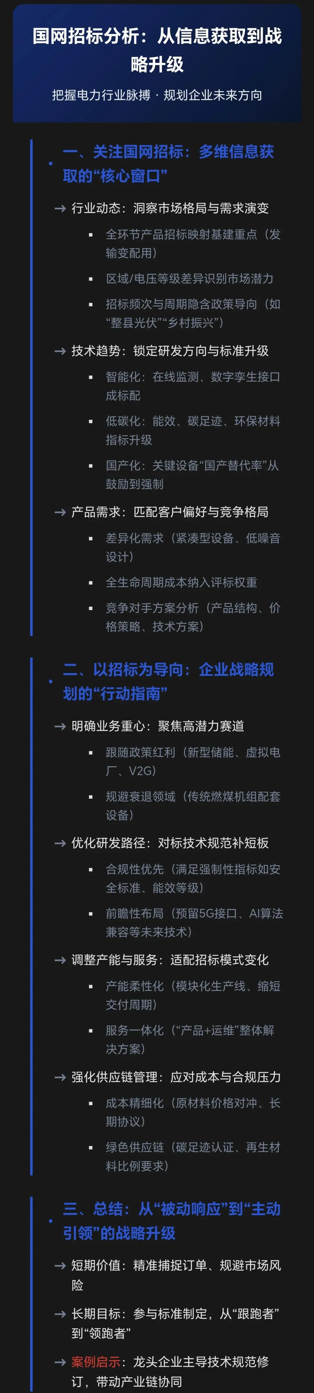 - 跟随政策红利:若招标中“新型储能”“虚拟电厂”“车网互动(V2G)”等产品占比持续提升,具备电池管理、能量调度技术的企业可加大研发投入,抢占新兴市场;