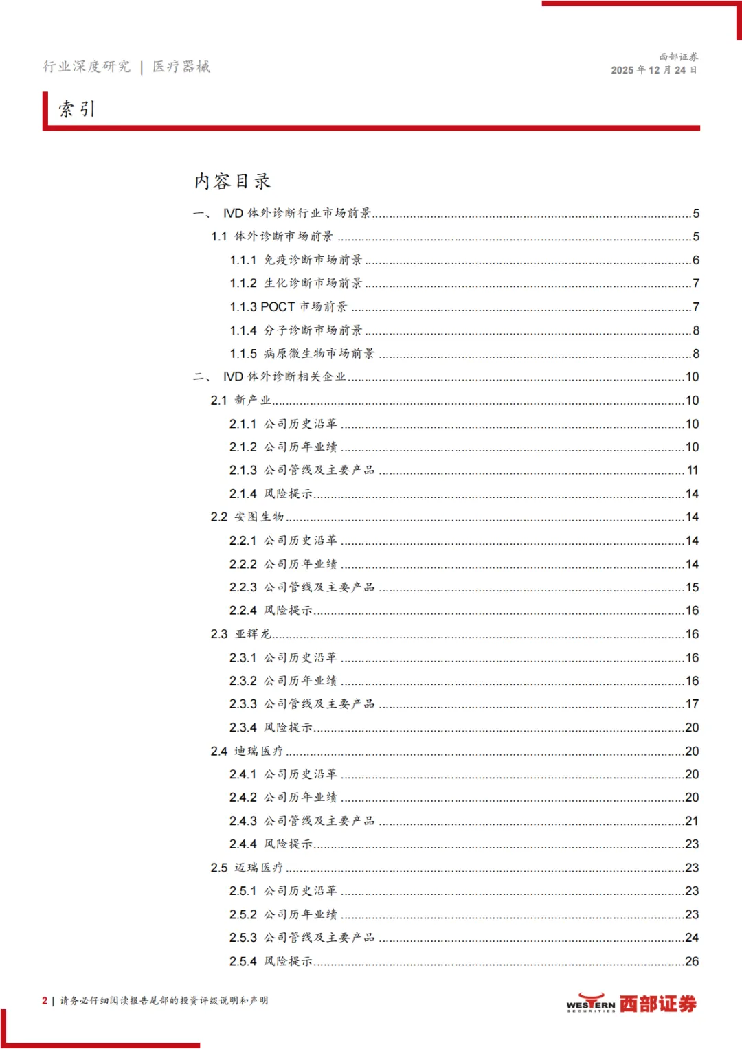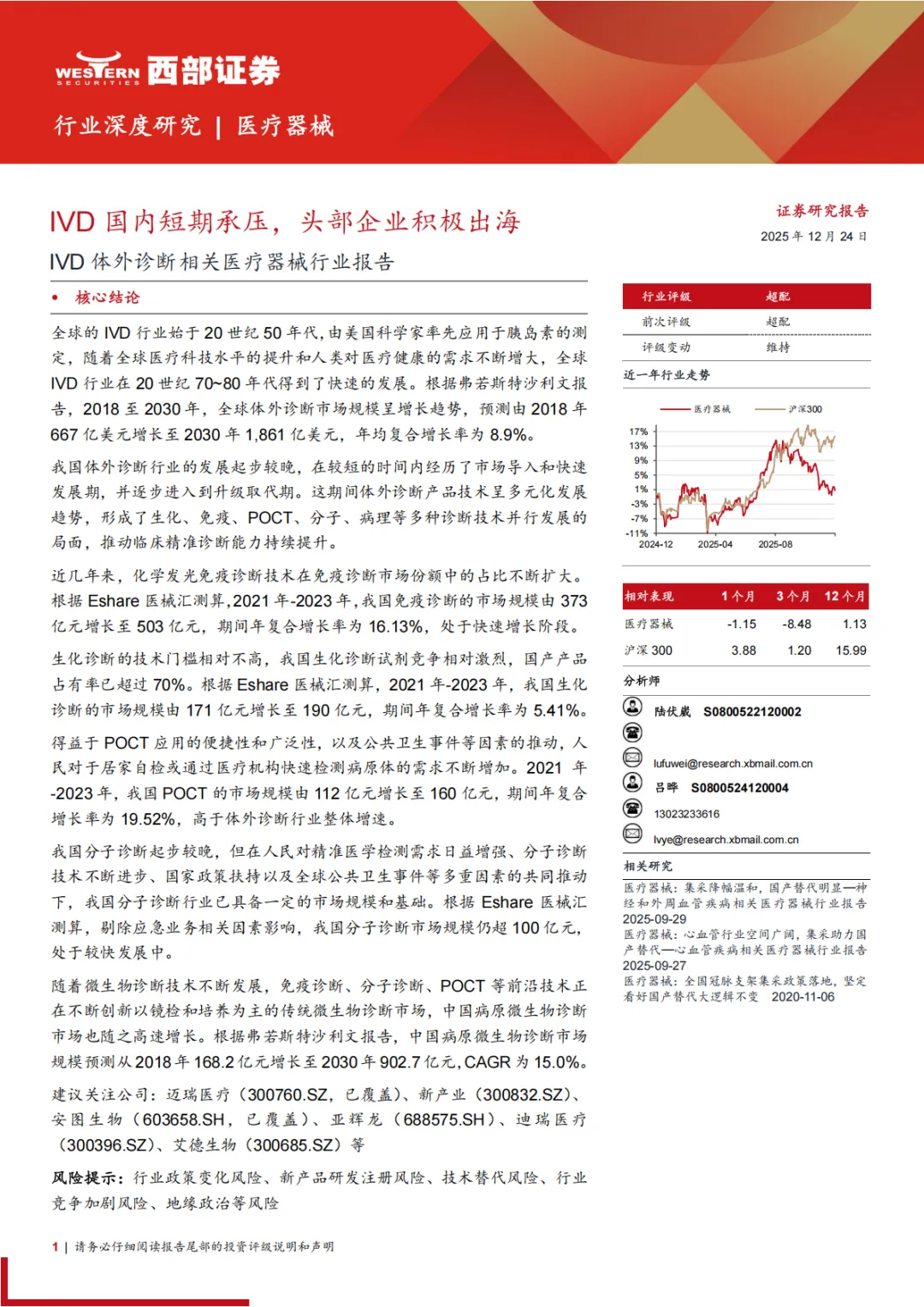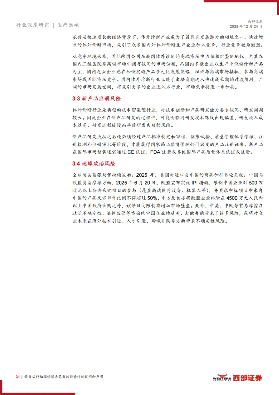 风险提示:行业政策变化风险、新产品研发注册风险、技术替代风险、行业竞争加剧风险、地缘政治等风险