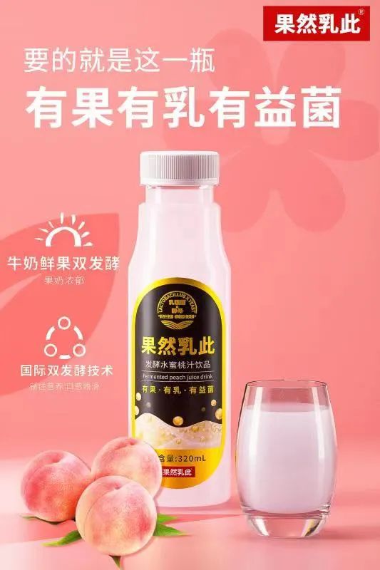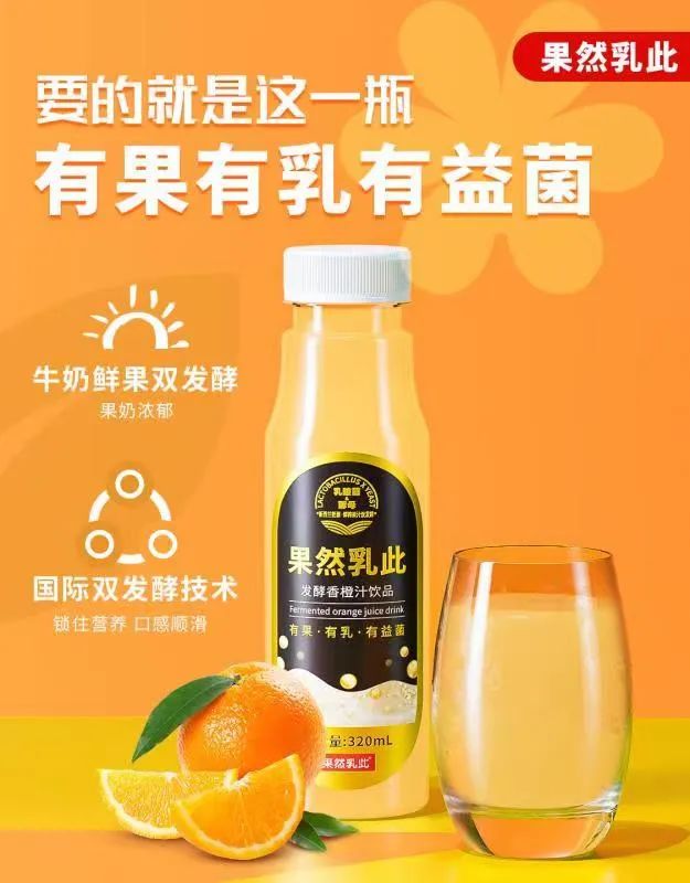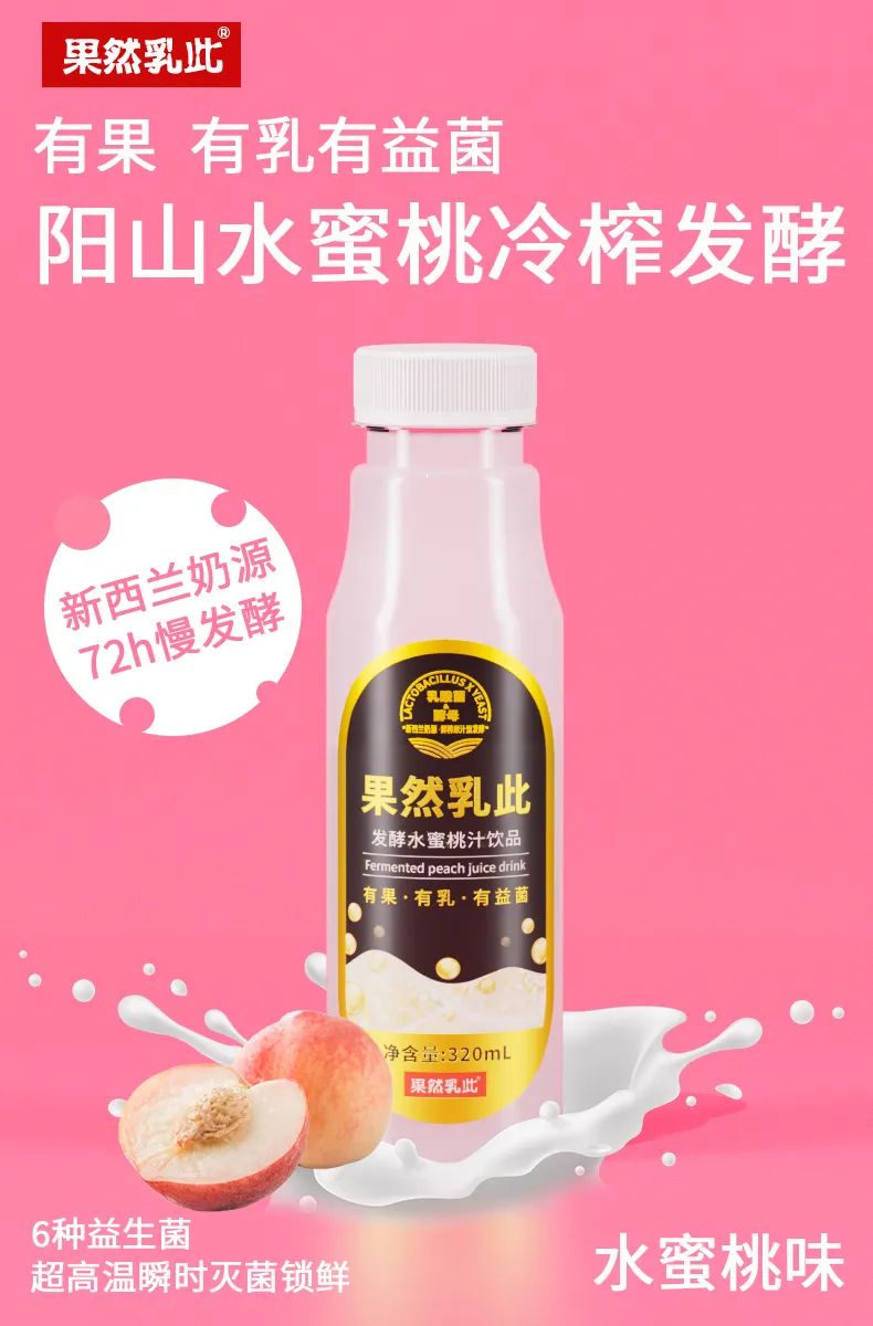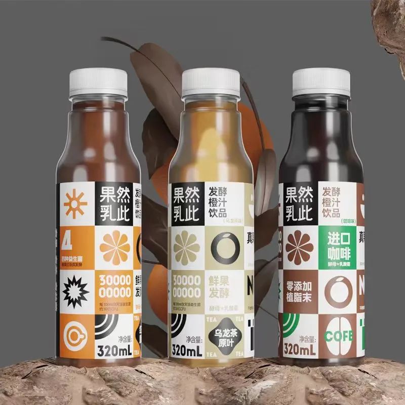 果然乳此将实际330ml的容量标注为320ml,对比市面单水果发酵的发酵果汁普遍180ml、260ml,加大容量。充分考虑到消费者不同场合的消费需求,方便携带饮用,瓶身选用了32克的PP材质,赋予产品厚重的质感,耐高温耐冷冻,产品适合各大商场超市、便利店、餐厅、学校、酒店等消费者渠道,多渠道发展有利于经销商组合拳式快速推广。