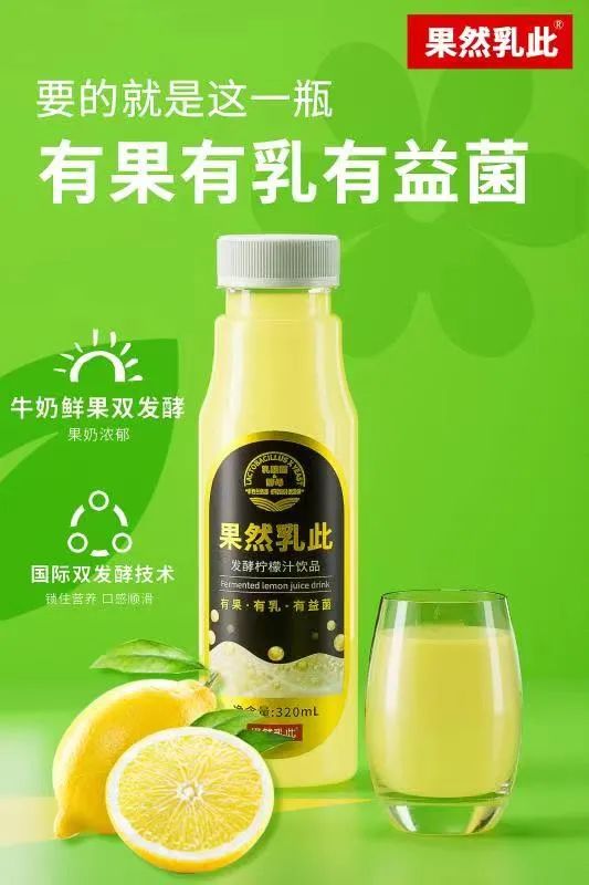 果然乳此双发酵果汁饮品为深度迎合现代年轻消费群体的健康追求,优选添加6种益生菌发酵,低热量,0脂肪,富含多种微量元素,每瓶近百亿的含菌量,配上鲜奶的芳香,奶香果香完美融合,口感纯正,酸甜配比刚刚好,清爽解渴还不腻。