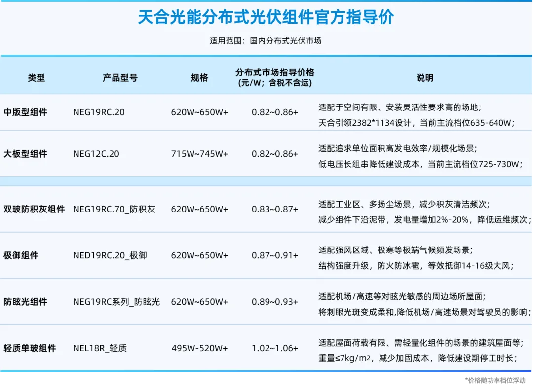 本次价格调整结合基于行业客观市场波动,为分布式光伏产品标准出厂指导价(含税不含运);具体详情可咨询销售经理;本价格随行业成本动态调整,最终解释权归天合光能所有;
