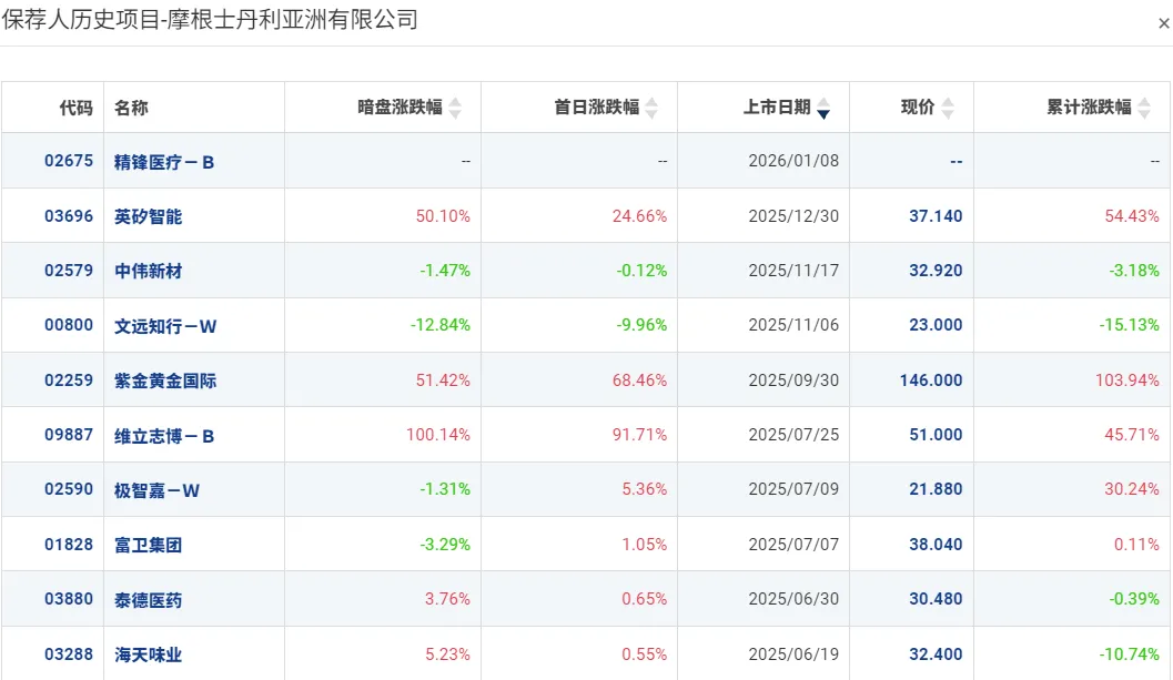 保荐人历史业绩: