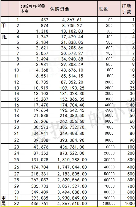 甲组的各档融资所需要的本金还有融资金额对应如下表: