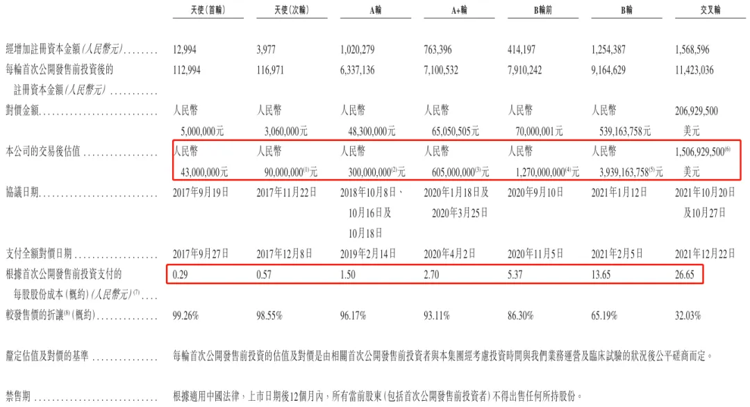 2. 每股股份成本:天使首轮每股成本约0.29元,天使次轮升至0.57元;A轮为1.50元,A+轮增至2.70元;B轮前达5.37元,B轮飙升至13.65元;交叉轮进一步涨至26.65元。每股成本随融资轮次推进持续上涨,反映公司股权价值逐步提升。
