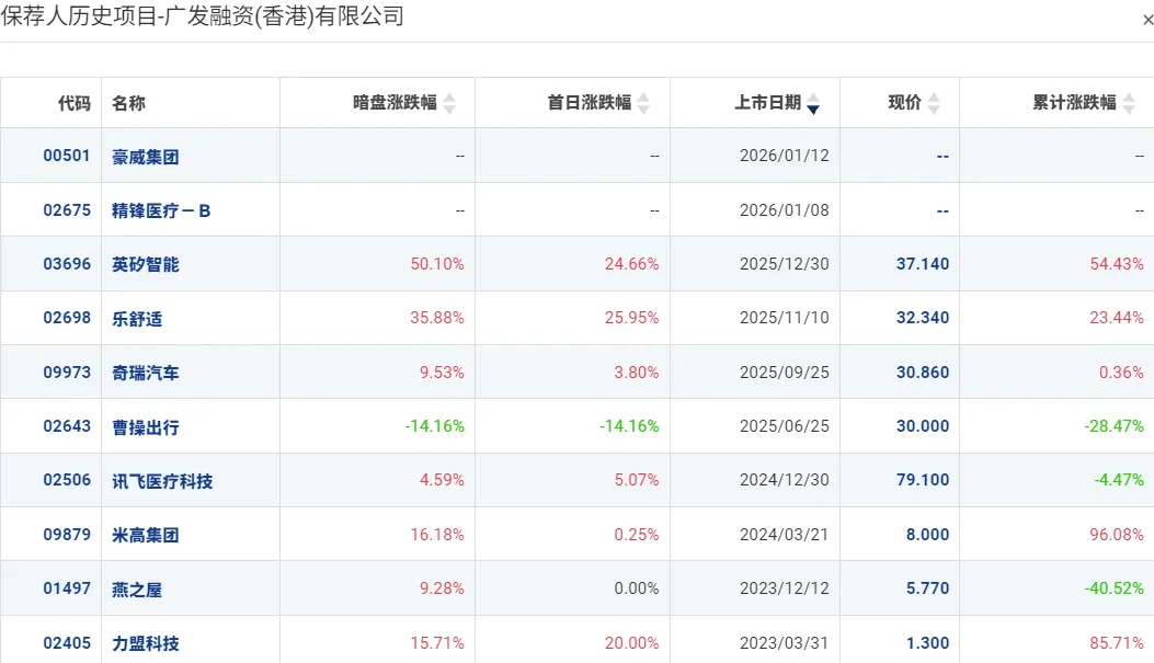 保荐人历史业绩: