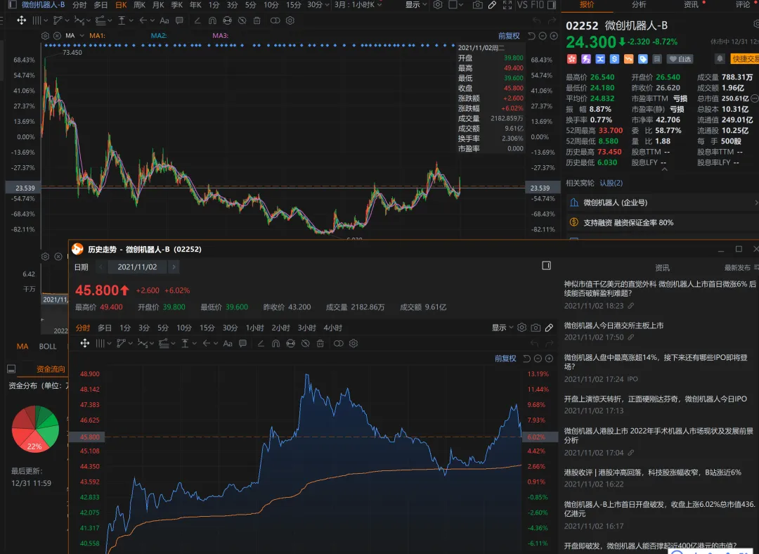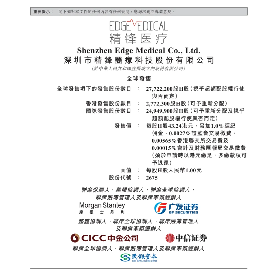 精锋医疗这个票发行市值167.65亿港元,H股市值139.93亿港元,募资总额11.99亿港元,基本上也能确定就是市场化发了,就看有没有机构二级愿意为他买单了。说起手术机器人,这个票在市场上并不稀缺,龙头应该还是微创机器人,微创机器人现在250亿的市值,金峰医疗发167亿,估值应该挺难超越龙头老大哥微创机器人,微创机器人当年这个票在牛市末期来的,上市开盘都破发,不过好在上市之后拉起来了,现在的这种行情之下,应该不至于走成这样吧?相信这个票那么亮眼的一堆明星基石 拿的那些锚定国配应该不至于砸盘吧?二级市场这块也会护住他吧?