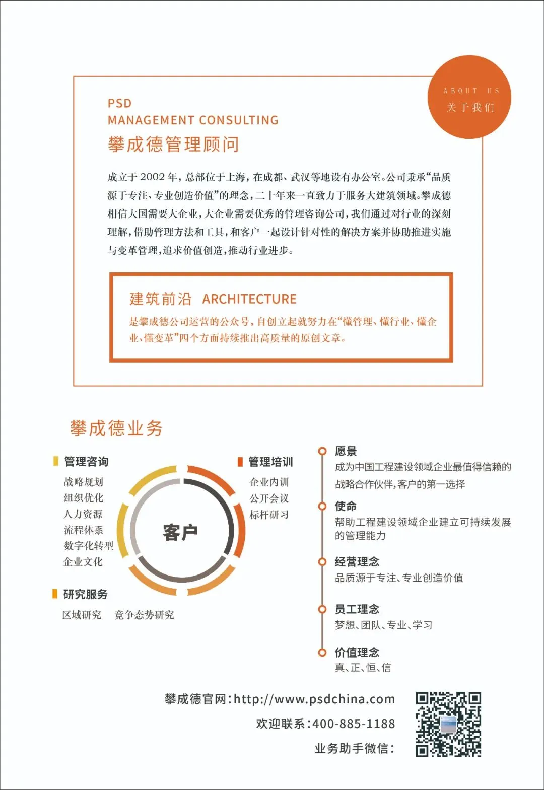 限于篇幅,有些思考和感悟未能展开,不到之处希望能得到业内人士的指导,我们一起探寻建筑行业和建筑企业的出路。