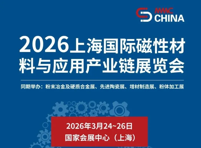 为助力磁性材料行业升级创新,2026上海国际磁性材料与应用产业链展览会(MMIC CHINA 2026)将于2026年3月24-26日 在国家会展中心(上海)1.1馆 & 2.1馆 盛大启幕!
