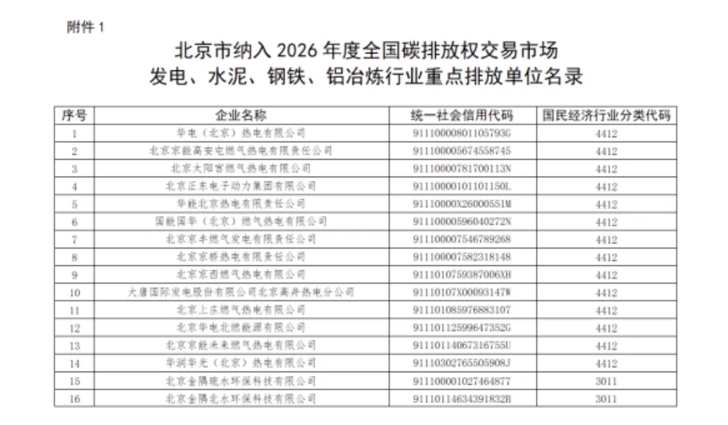 2026年度共有14家发电企业(天然气发电机组)、2家水泥企业纳入全国碳市场重点排放单位名录,3家石化、民航(机场)等部分重点行业企业纳入温室气体排放报告与核查工作范围。